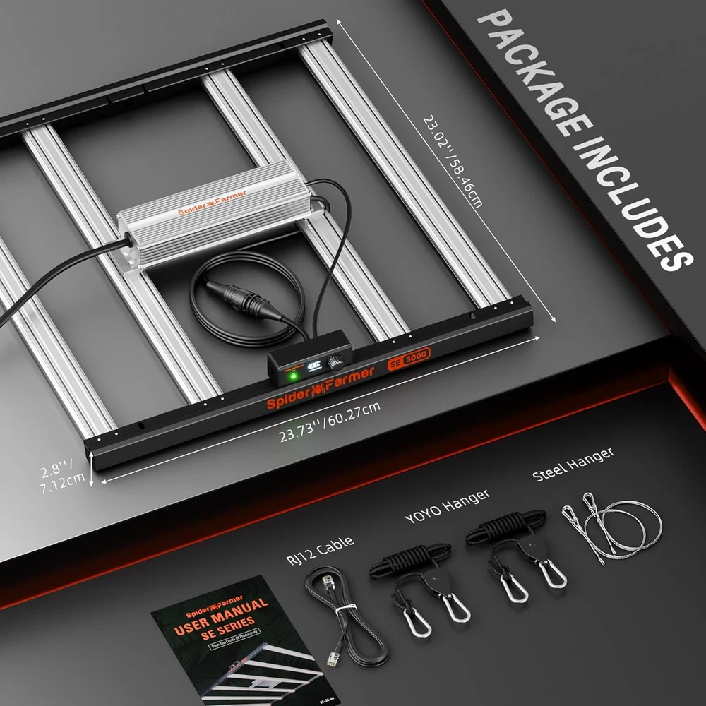 Store New Arrivals Add to Favorite View Feedback Contact Spider Farmer SE3000 LED Grow Lights 300W Samsung LM301H EVO Diodes, 3X3Ft Coverage Bar Style Grow Light Full Spectrum Digital Dimming Screen Dimmable Grow Lamp for Indoor Plants Description Light Source Type LED Item model number SE3000 Bar Style LED grow light Style Garden Are Batteries Included No Power Source Corded Electric Number of Light Sources 896 Specification Met CE Brand Spider Farmer Material Aluminum Maximum Compatible Light Source Wattage 300 Watts Manufacturer Spider Farmer Bulb Features dimmable Light Source Wattage 300 Watts Item Weight 11.92 pounds Bulb Base E26 Medium Mounting Type Spider Color Black & Orange Shape Square Voltage 120 Volts (AC) Shade Material Aluminum Product Dimensions 24.02"L x 24.02"W x 2.95"H Size 3X3 【SAMSUNG LM301H EVO DIODES】 The 2024 SE3000 LED grow light is equipped with horticultural-specific Samsung LM301H EVO diodes, achieving a remarkable efficacy of 3.14 μmol/J while consuming 300 watts to produce 856 µmol/s. Its unique extended 4-bar design ensures uniform and full canopy coverage, particularly at the edges of cultivation areas. Coverage for 3x3ft grow tent of high-yielding full-cycle growth 【DIMMABLE WITH DIGITAL DISPLAY】 Experience precise control with the SE3000 Spider Farmer grow light, featuring the latest dimmable technology and a clear digital display that shows the current brightness level, allowing for easy adjustments to suit your plants' needs. Enhance your commercial growing setup with the ability to daisy chain up to 50 SE3000 grow lights, all controlled by a single master light 【FULL SPECTRUM LIGHTING】The SE3000 is full spectrum grow light, including 2800-3000K, 4800-5000K, and 660-665nm, providing the ideal light blend for every stage of plant growth, from seedling to harvest, ensuring high-yielding, full-cycle growth 【WHY CHOOSE BAR STYLE LED GROW LIGHTS?】 The key advantage of bar-style grow lights lies in their ability to offer consistent light distribution across the canopy. Each light bar is strategically spaced to ensure a reliable and uniform spread of light, creating optimal growth conditions for your plants. Additionally, bar grow lights exhibit superior heat management compared to QB lights, minimizing hot spots on your plants 【5-YEAR COVERAGE】 High quality products and attentive after-sales service create the irreplaceable Spider Farmer LED grow lights. Five years of after-sales service is provided for the SE series grow lights, and any problems within this period can be repaired at your local repair center (USA/Canada/UK/Germany). Please feel free to contact us about product issues, and we will help you solve them SPIDER FARMER SE3000 LED Grow Lights 3x3ft Coverage ABOUT US We offer the best prices around on high quality products. Our E-store includes media such as books, movies, music and games while offering electronics, toys, sporting apparel, clothing, tools, general home, garden items and more. SHIPPING We are always working hard to ensure your package arrives as soon as possible. Please understand that some factors like weather, high postal traffic, and the performance of shipping companies are outside of our control. For shipping outside of the continental USA, we only use eBay's Global Shipping Program.The item is shipped to KY and then sent to the rest of the world. International customers are responsible for all duties and taxes. Continue to check out in order to calculate costs for shipping the item to your country. Messages regarding eBay's Global Shipping Program MUST be directed at eBay EXCLUSIVELY. RETURNS We offer a 30-Day Return Policy on items which you are not completely satisfied with. You have the option for a full-refund or an exchange of the item. No returns are available on items shipped outside of the USA. PAYMENT We accept PayPal. CONTACT US This page content is yet to come Please ad us to your favorite seller and visit again later Thank You CUSTOMER SATISFACTION We try our very best to make sure every customer is completely satisfied. If there's a problem, message us! We're happy to help. WE ACCEPT Copyright © 2021 AutoDS. | All Rights Reserved