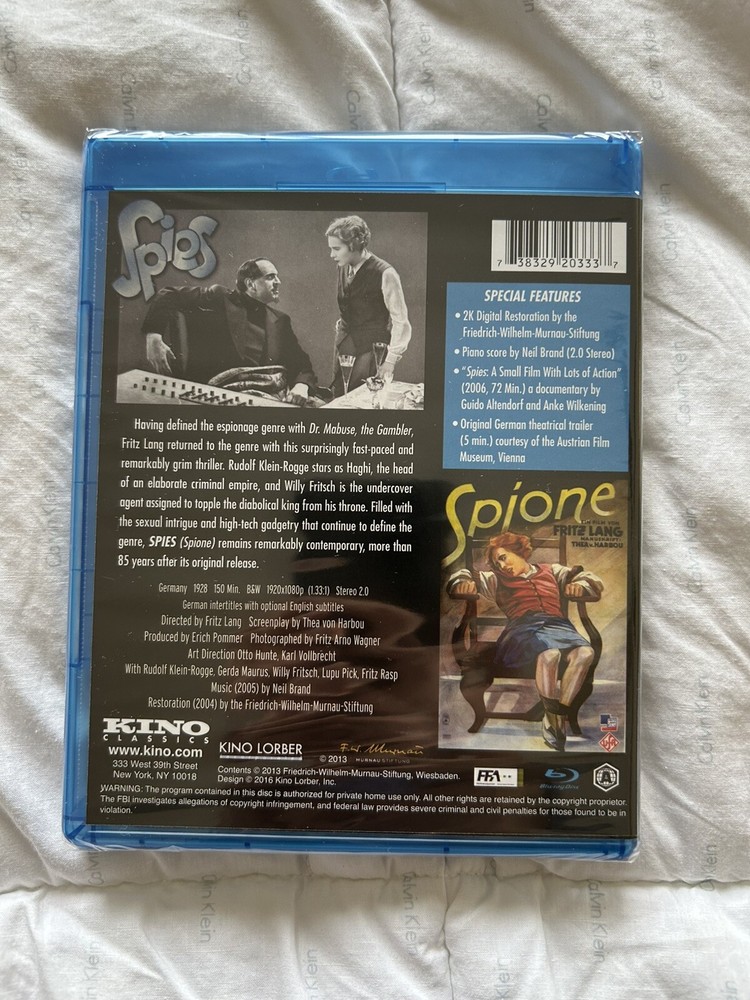 Spies Blu-ray 1928 Fritz Lang Classic Film Brand New Factory Sealed Direct from Manufacturer Original Packaging Vintage Cinema Collectible