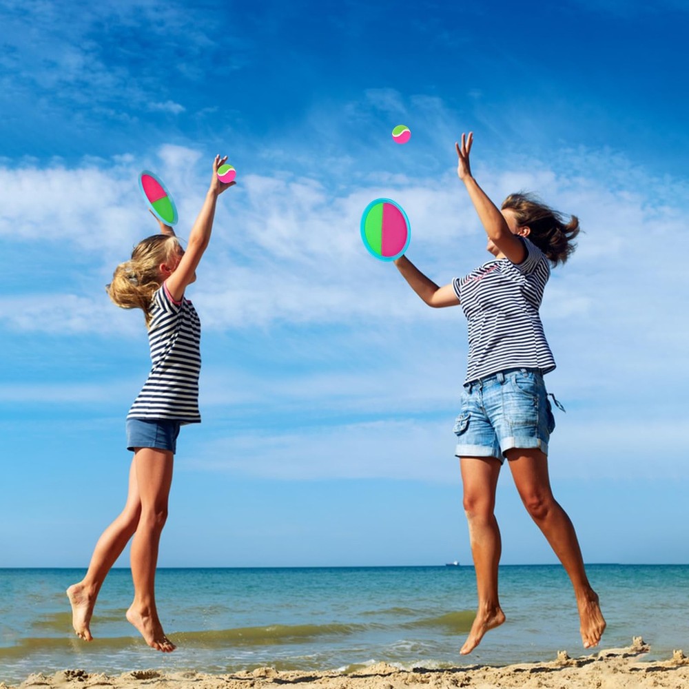 1. This toss and catch set is a blast for kids and adults alike! Perfect for beaches, parks, or backyard fun, it boosts hand-eye coordination while keeping everyone active. The sticky balls and easy-grip mitts make catching effortless, and the included storage bag is super handy. Great for family game nights or outdoor play—durable, portable, and loads of fun for all ages!