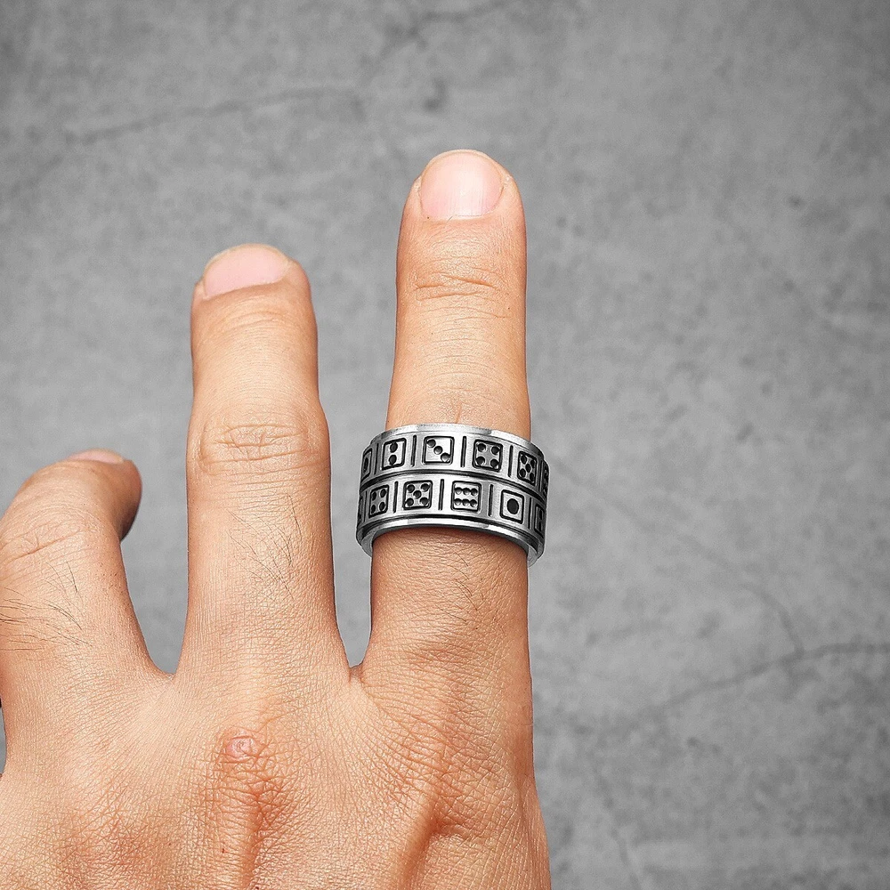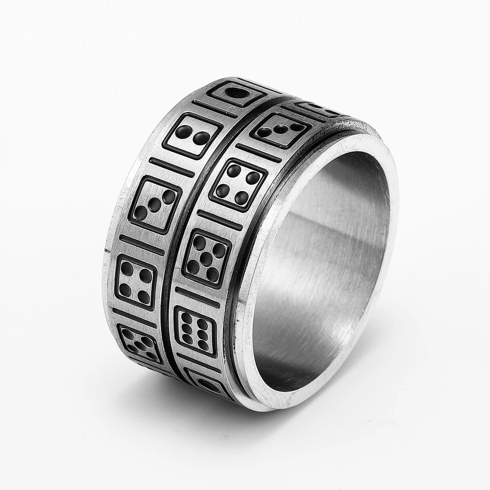 Spin Sieve Lucky Amulet Men Fidget Ring Stainless Steel Highly Polished Jewelry