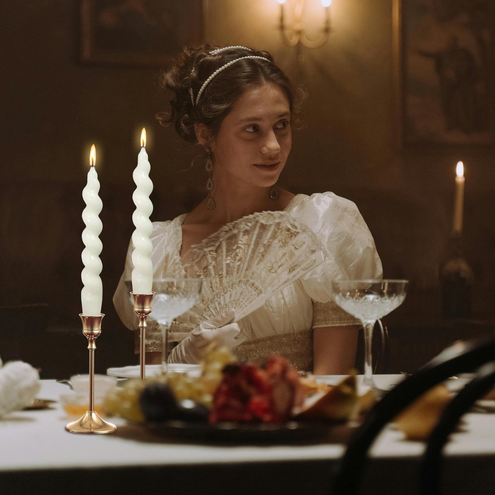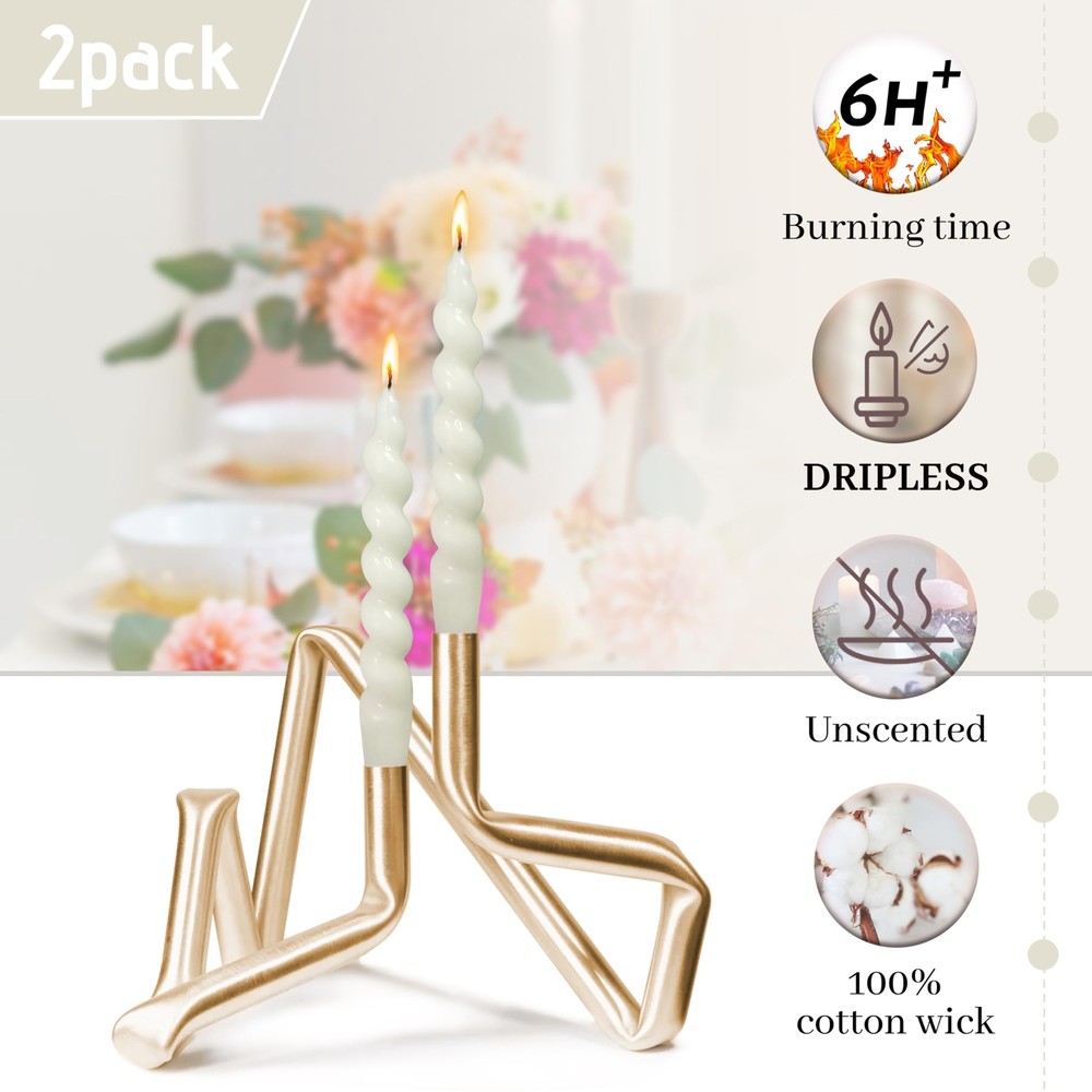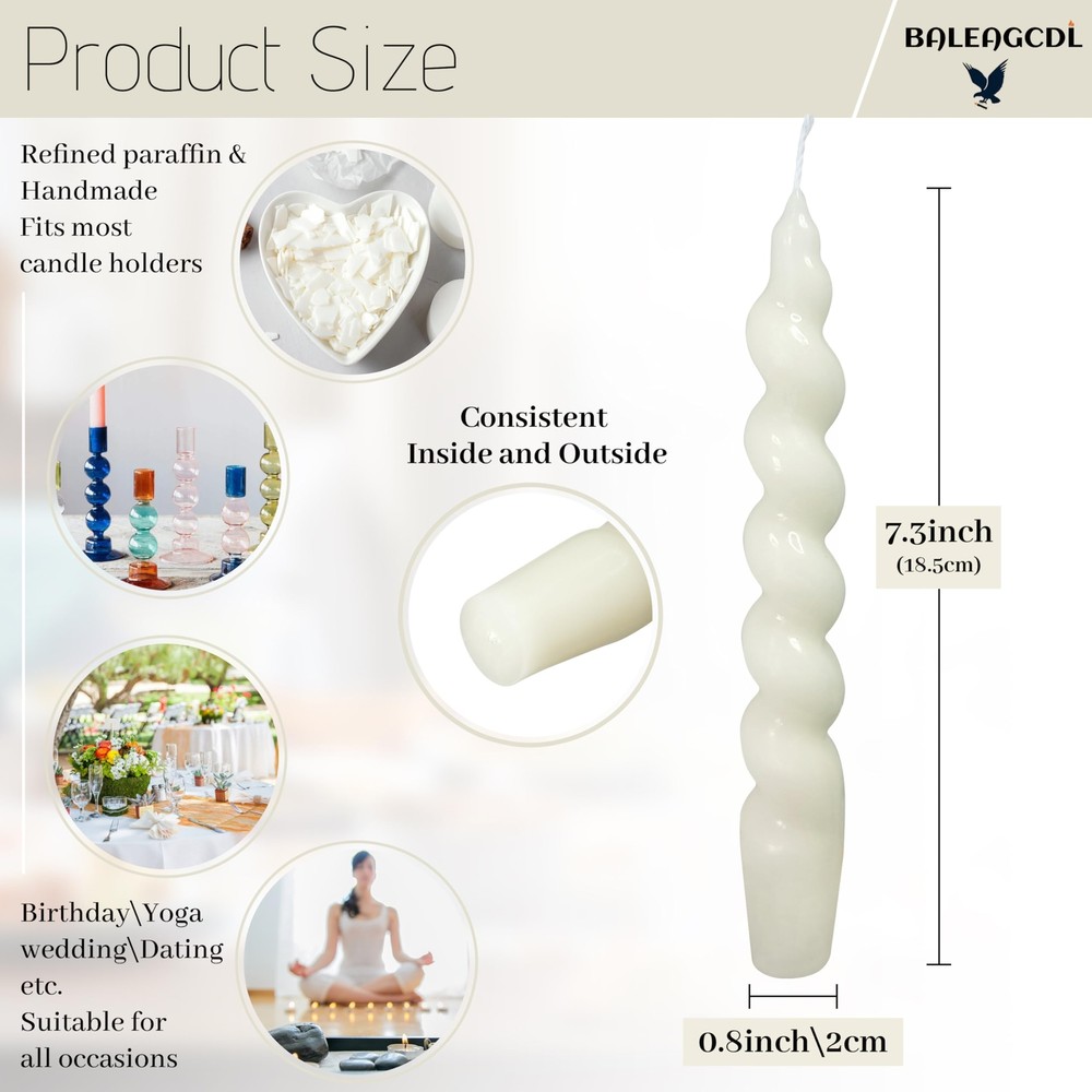 Spiral Taper Candle 7.5 Inch Milk White Unscented Smokeless Twisted Candlestick