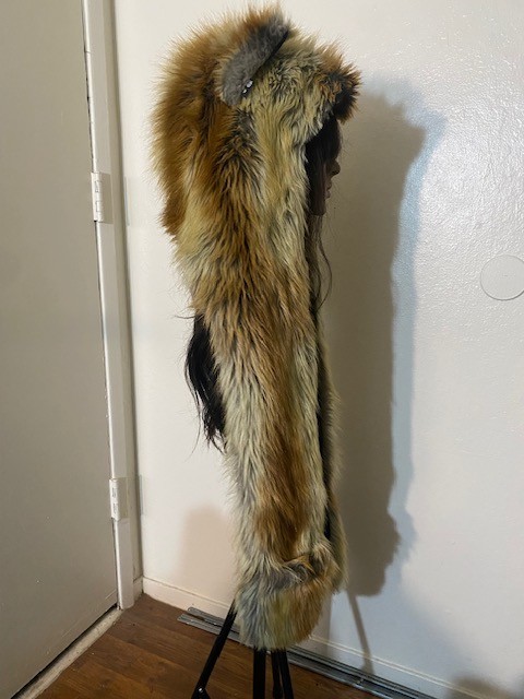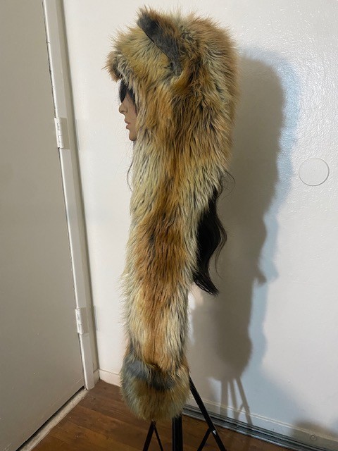 Style: Hooded scarf Size: One Size Material: Faux Fur Brand: Spirit Hoods Department: Unisex Adults Color: Brown