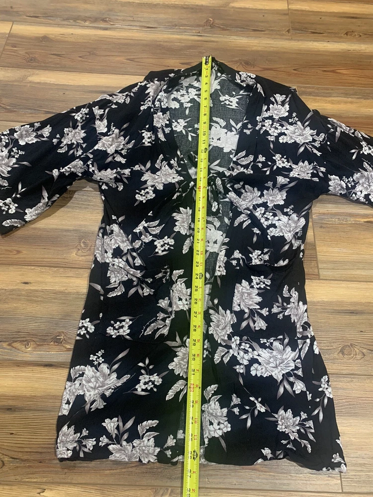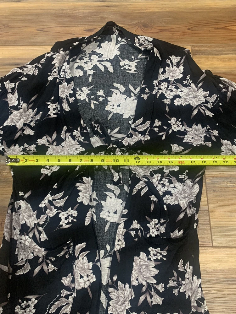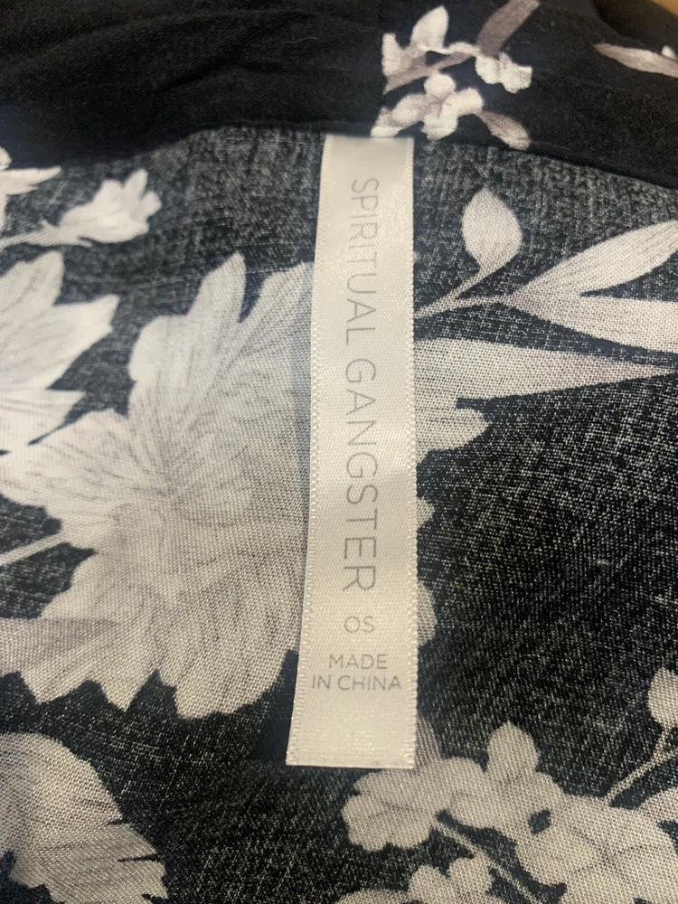 Spiritual Gangster Maya Kimono Cover-Up Robe Black White Floral Pattern One Size Excellent preowned condition See photos for details and flat measurements
