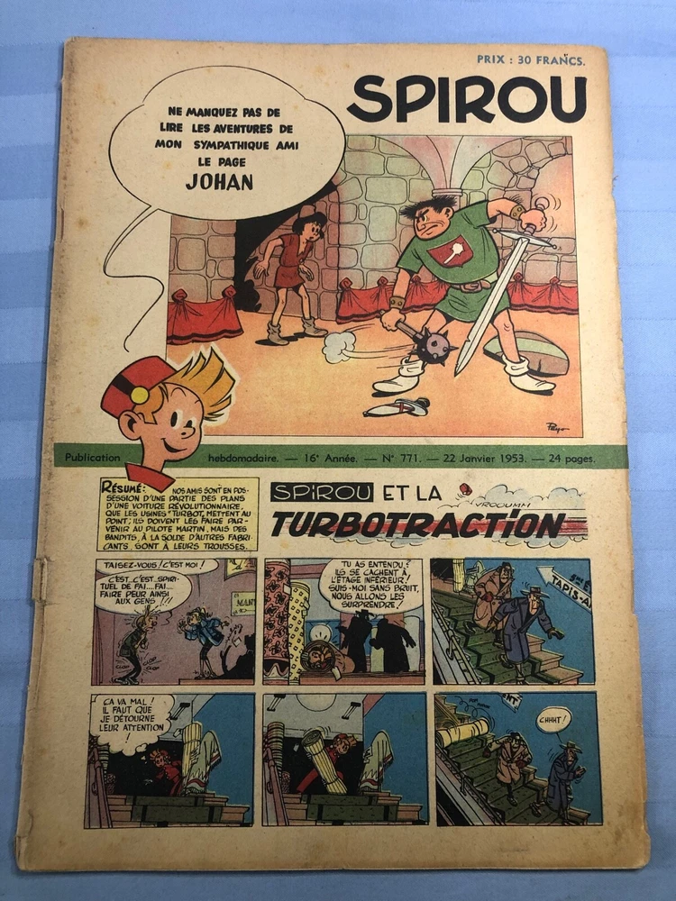Spirou 767 & 771 Year 1952 Weekly French Editions, set of 2, used I brought an extensive collection of Spirou or journal de Tintin from France and will progressively sell these since it takes time to list