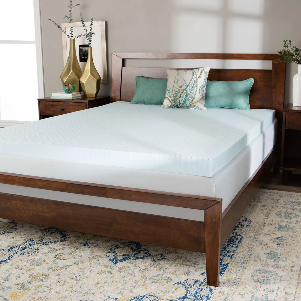 Splendorest's Gel Memory Foam Mattress Topper is 4 inches thick and provides cooler sleep than traditional memory foam matresses. Reduce stress on critical pressure points and sleep better than you ever have before. The temperature smart gel memory foam conforms to body contours for your comfort. The gel memory foam recovers quickly and reduces motion transfer so as not to disturb the person next to you. Gel foam is resilient and provides firmer support than traditional visco-elastic foam. This mattress is cut slightly smaller than mattress size so that sheets fit over additional depth. Memory Foam Type: Gel Memory FoamType: Mattress TopperDensity: 2.5 PoundFirmness: MediumCover: No cover includedProduct Features: Antimicrobial, HypoallergenicThickness: 4 inchesCare Instruction: Spot Free Shipping Over $49.99* Details Splendorest 4-inch Gel Memory Foam Twin XL Dorm Mattress Topper - Blue Product Description: Splendorest's Gel Memory Foam Mattress Topper is 4 inches thick and provides cooler sleep than traditional memory foam matresses. Reduce stress on critical pressure points and sleep better than you ever have before. The temperature smart gel memory foam conforms to body contours for your comfort. The gel memory foam recovers quickly and reduces motion transfer so as not to disturb the person next to you. Gel foam is resilient and provides firmer support than traditional visco-elastic foam. This mattress is cut slightly smaller than mattress size so that sheets fit over additional depth. Memory Foam TypeGel Memory Foam TypeMattress Topper Density2.5 Pound FirmnessMedium CoverNo cover included Product FeaturesAntimicrobial, Hypoallergenic Thickness4 inches Care InstructionSpot Clean SizeTwin, Twin XL, Full, Queen, King Dimensions: Twin34 inches wide x 72 inches long x 4 inches deep Twin XL34 inches wide x 76 inches long x 4 inches deep Full50 inches wide x 72 inches long x 4 inches deep Queen56 inches wide x 76 inches long x 4 inches deep King74 inches wide x 76 inches long x 4 inches deep Resistant to dust mites, naturally antimicrobial Temperature-smart memory foam responds to body heat and movement, reshaping to distribute body weight and relieve pressure points to improve circulation Never needs turning Memory Foam Tips: Arrives tightly packed in portable box for customer convenience. Remove from packaging within 72 hours to maximize expansion. You can sleep on it the same night it is unwrapped, however allow 48 hours to fully return to its original shape. Vacuum sealing sometimes traps odors. After unwrapping, air for a few hours to eliminate trapped odors. Due to machine-cutting manufacturing processes, there may be slight variances in the dimensions of this product. Due to the nature of Memory Foam the firmness level of similar products may produce different firmness results Once opened this product is non-returnable.