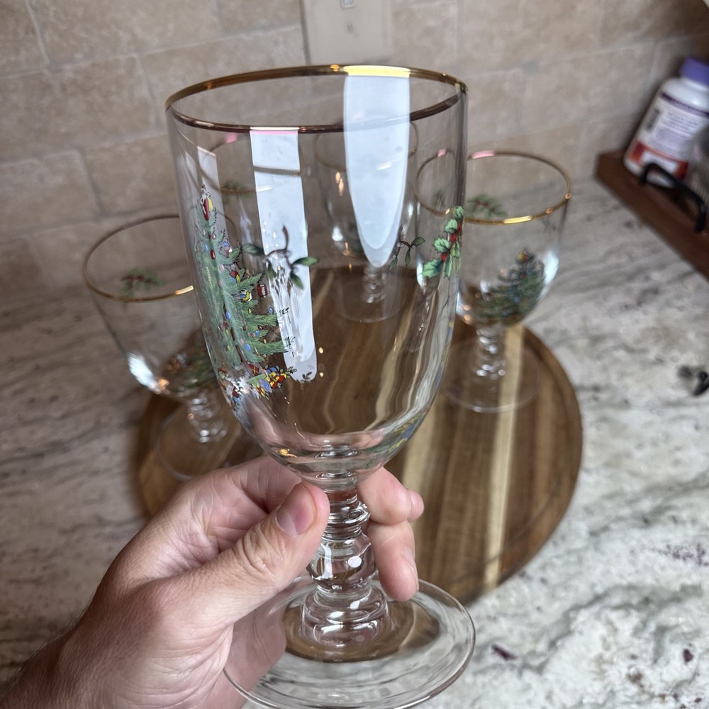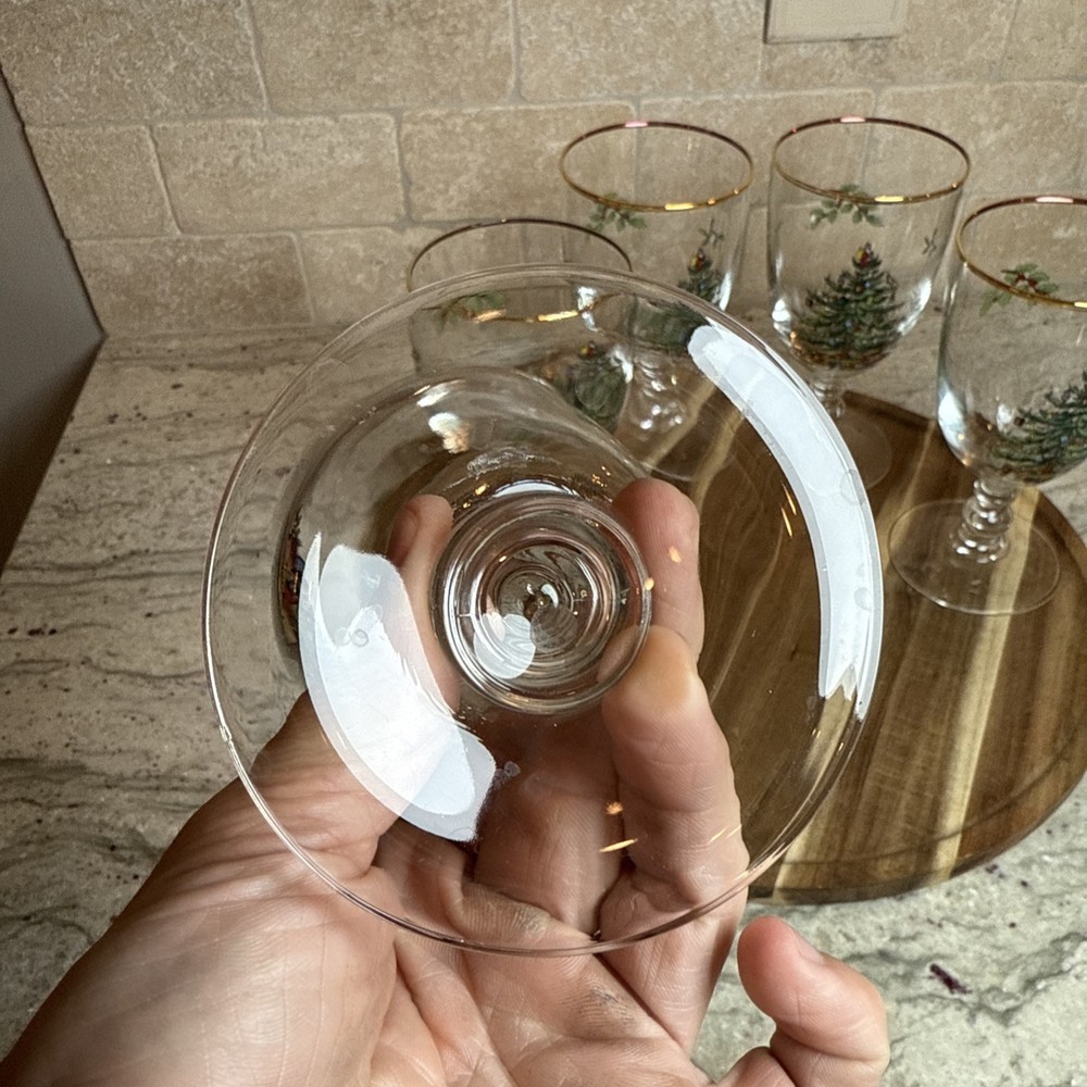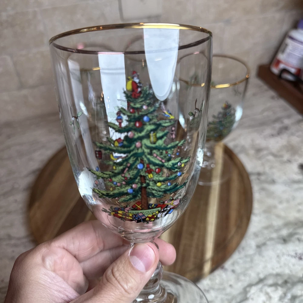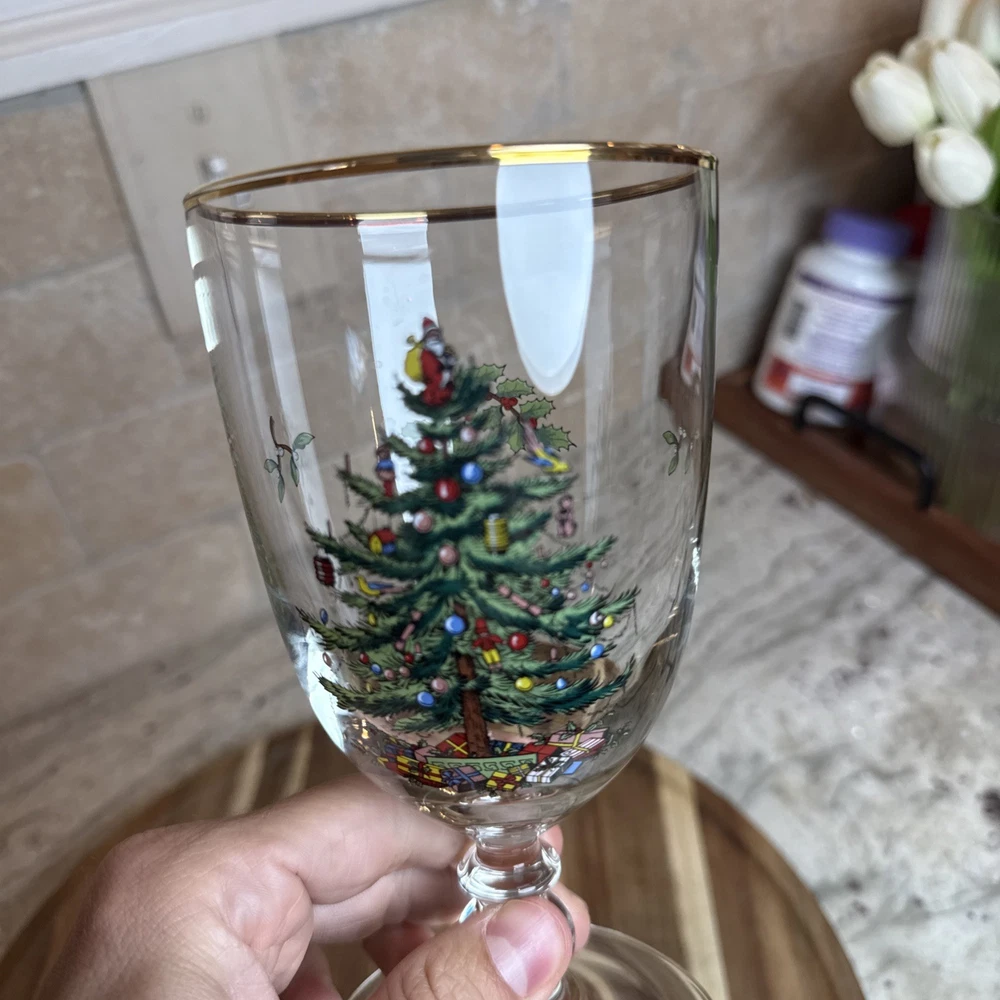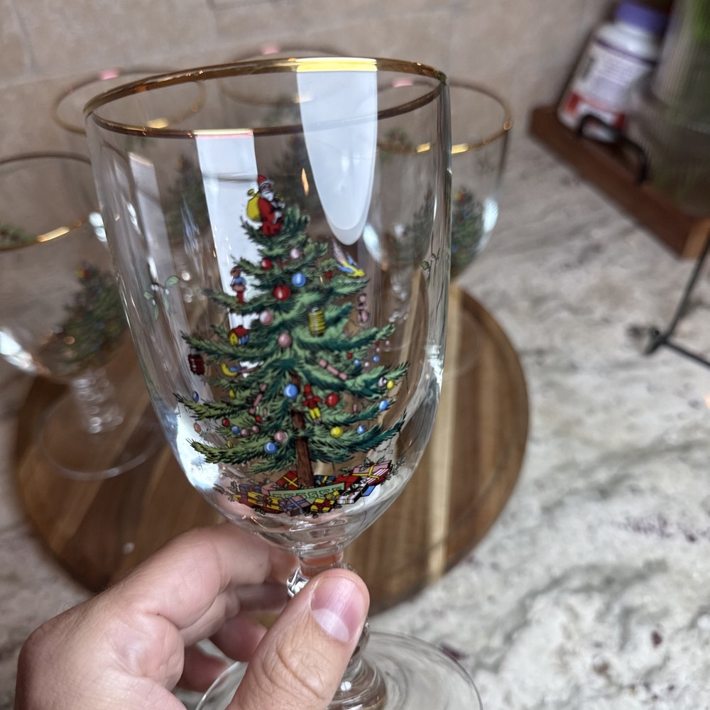 Number of Items in Set:Four-PieceOccasion:ChristmasOrigin:EnglandPattern:Christmas TreeBrand:SpodeType:GobletOriginal/Licensed Reproduction:OriginalColor:ClearVintage:NoCountry/Region of Manufacture:United KingdomHandmade:NoShape:RoundMaterial:Glass