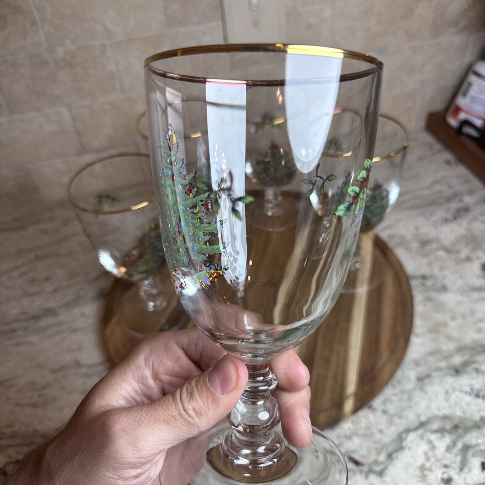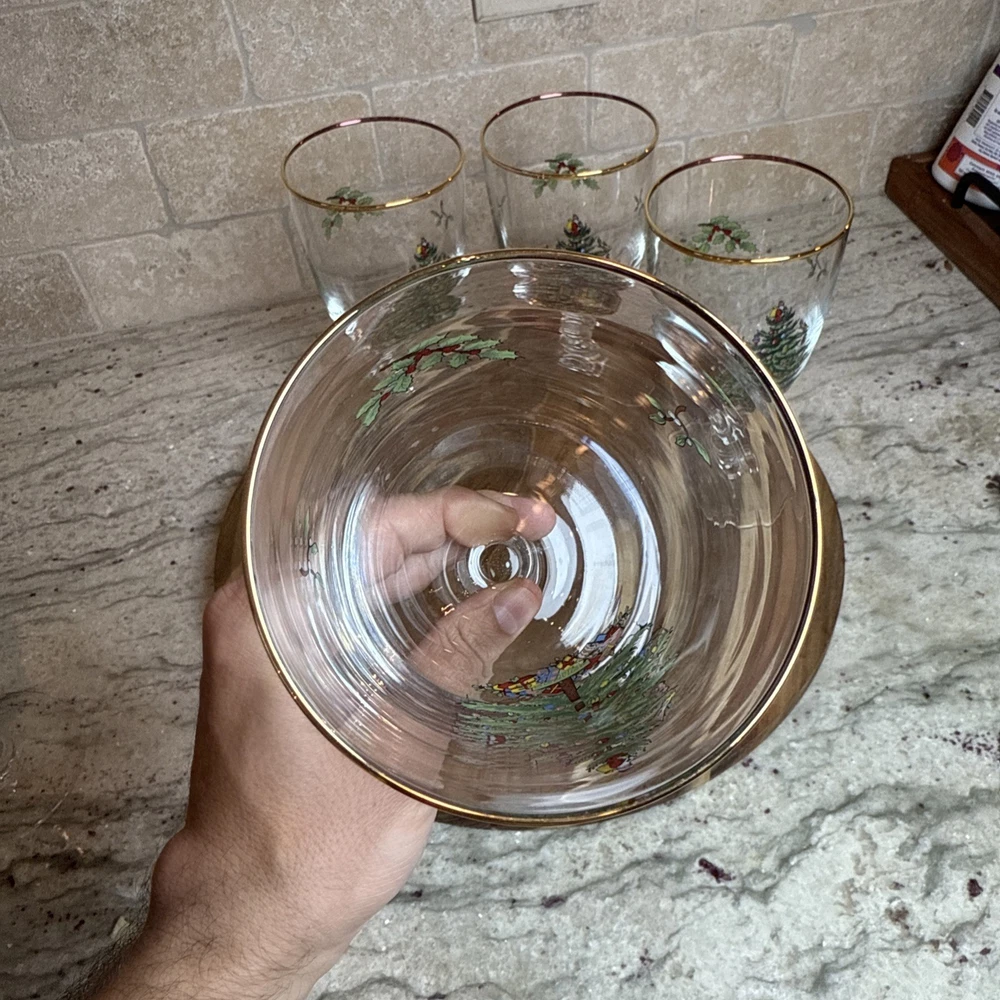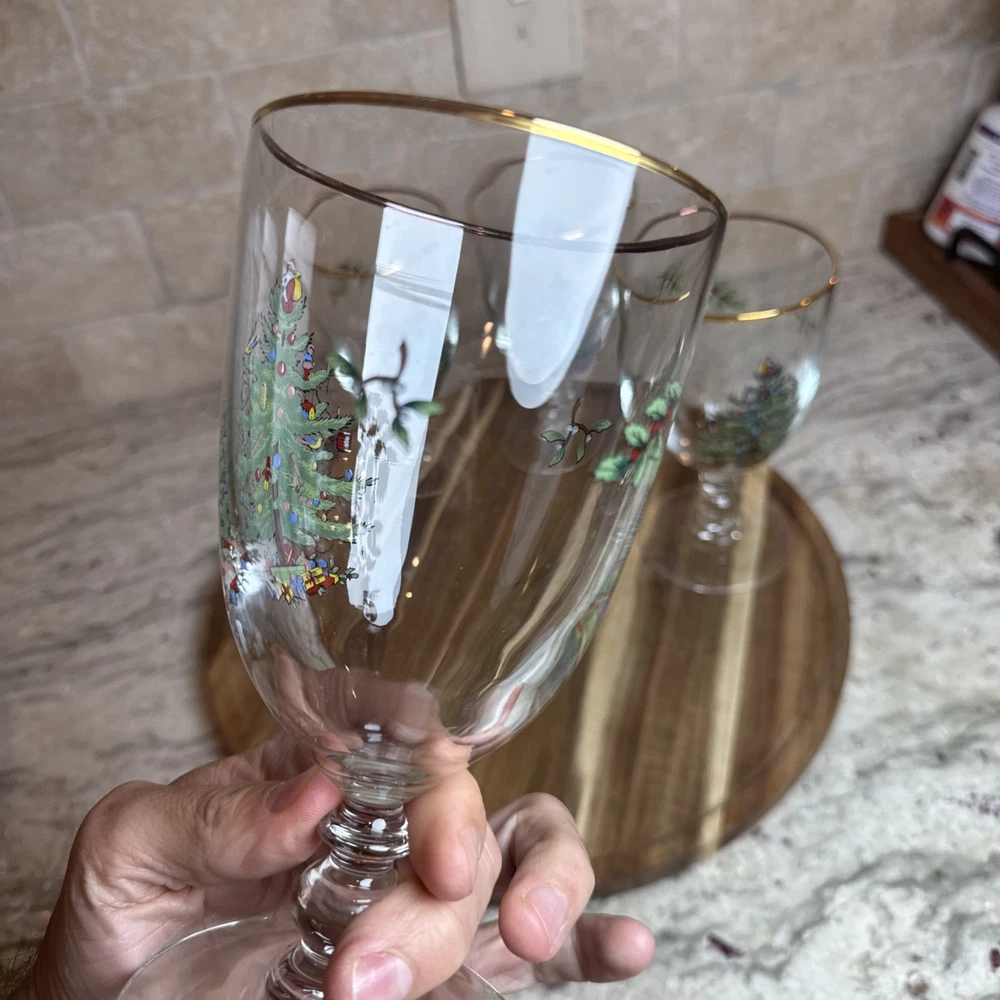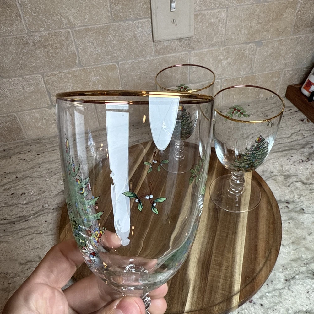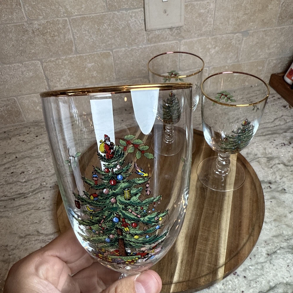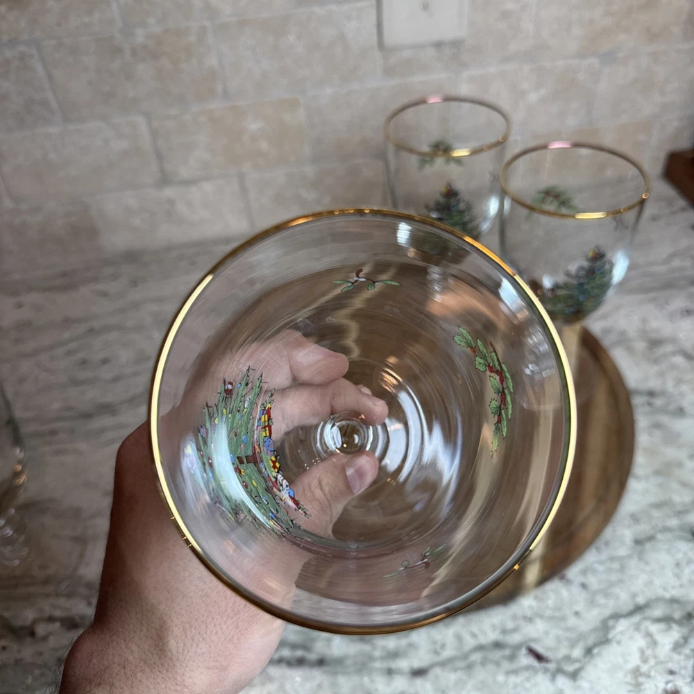 Number of Items in Set:Four-PieceOccasion:ChristmasOrigin:EnglandPattern:Christmas TreeBrand:SpodeType:GobletOriginal/Licensed Reproduction:OriginalColor:ClearVintage:NoCountry/Region of Manufacture:United KingdomHandmade:NoShape:RoundMaterial:Glass