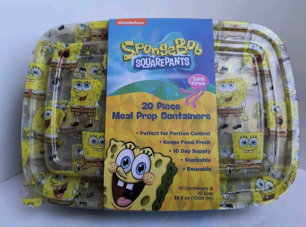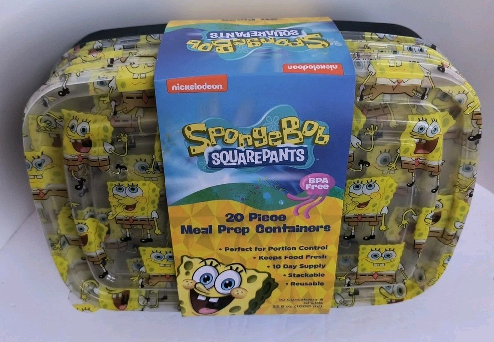 SPONGEBOB SQAREPANTS 20 Piece Meal Prep Food Storage Containers NEW! Free Shipping! 10 Spongebob Squarepants Plastic Containers with 10 Lids. Bring a touch of comic strip charm to your kitchen with these Best Brands Nickelodeon Spongebob Squarepants Meal Prep Food Storage Containers, featuring Spongebob Squarepants. Each container is designed to keep your food fresh and appealing, with a lively multicolor print that is sure to spark joy in both kids and adults. With a practical capacity of 3.38 oz., these rectangular containers are perfect for meal prep, picnics, or simply storing leftovers. Crafted from durable plastic and boasting an airtight lid to maintain the freshness of your food, these containers are both functional and stylish. The set includes 20 pieces, each measuring 8.5 inches in length, 5.75 inches in width, and 2 inches in height, making them a versatile addition to any pantry or fridge. Whether you're packing a lunch or organizing your snack drawer, these Spongebob Squarepants containers are a delightful way to store your food. BPA Free! Care Instructions: Wash before First Use. Dishwasher Safe (Top Rack Only). Microwave Safe (Bottom only). Freezer Safe. These are so Cute for your leftovers or taking Breakfast/Lunch/Dinner items to work! Spongebob Squarepants Fans will Love them!