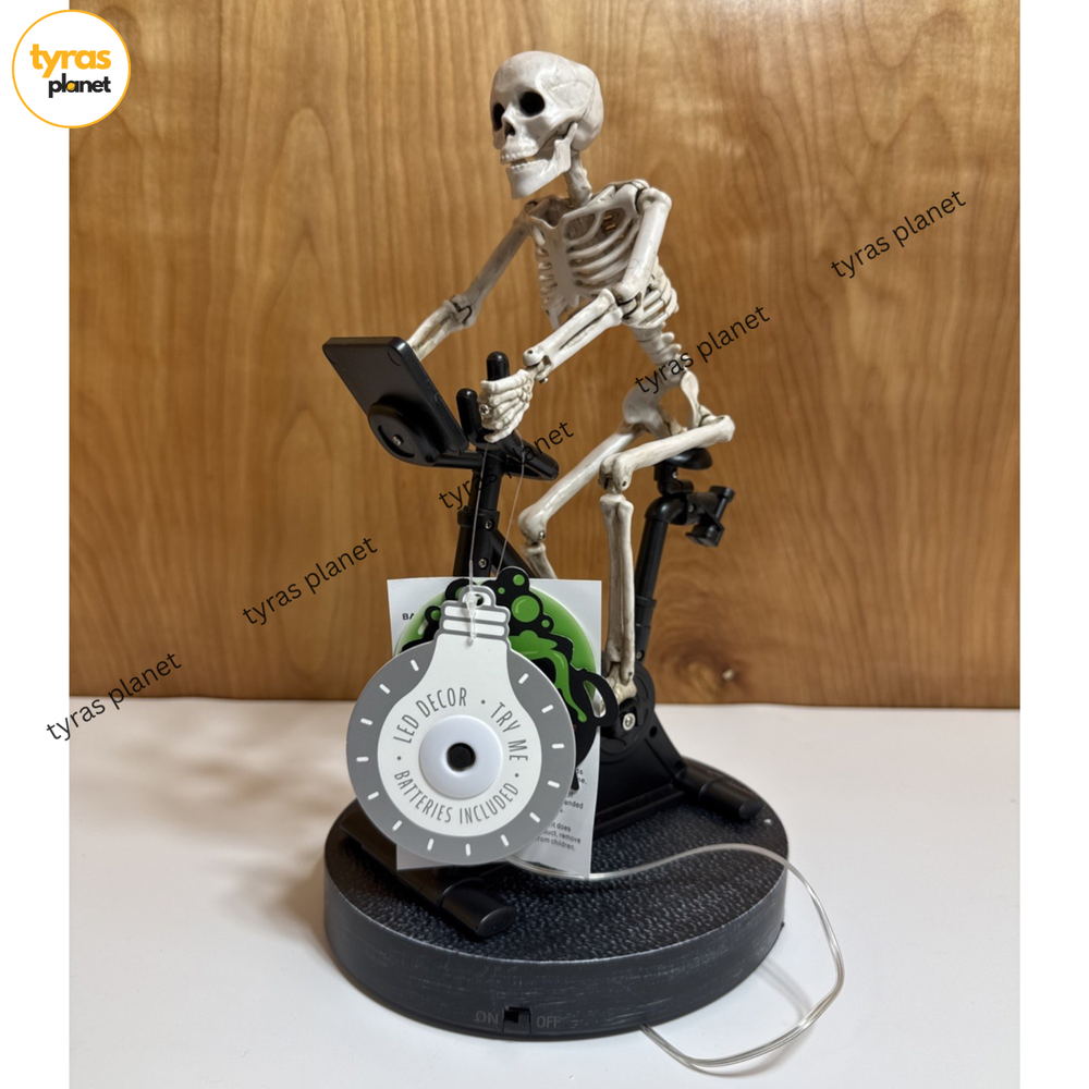 The Toil And Trouble Halloween Exercise Bike Skeleton Dance Floor is a fun and festive figurine perfect for Halloween decor. Made of plastic and featuring a multicolor matte finish, this modern-style figurine stands at 13" tall and weighs 1 lb. With a free-standing design, this unique item adds a playful touch to any room and is easy to clean with a damp cloth. The led lights and movements of the skeleton dancers bring a lively and entertaining atmosphere to your home during the Halloween season.
