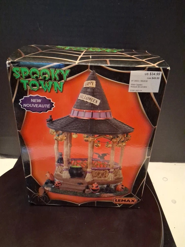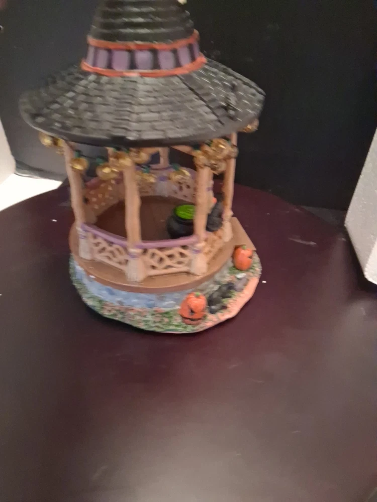 Add a touch of whimsy to your Halloween Village with the Lemax Spooky Town Witch Gazebo. This charming accessory encapsulates the festive spirit of autumn, complete with resin craftsmanship that captures the eerie essence of Halloween. It's a delightful piece for collectors and seasonal decor enthusiasts alike. Cute estate find like new condition see pictures for details perfect addition to any Halloween display could make a great gift shipped right out USPS ground advantage The intricate detailing of the Witch Gazebo reflects the quality and creativity of the Lemax brand, known for their seasonal collections. Whether you're creating a spooky tableau or accenting your fall display, this gazebo adds a magical element to any setting, sure to enchant guests and trick-or-treaters.