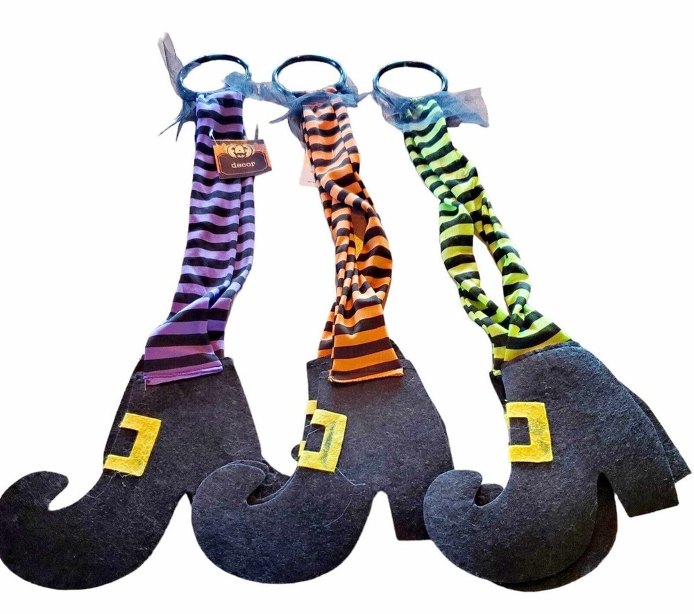 🧙♀️ Witch Shoes Door Hangers – Striped Halloween Decoration | Fun & Festive Hanging Décor Add a whimsical and spooky flair to your Halloween setup with these striped witch shoes door hangers ! Perfect for front doors, entryways, or even indoor décor, these festive hangers bring a playful twist to your Halloween decorating theme. ✨ Key Features: 🥿 Striped Witch Shoe Design – Bright, colorful witch shoes with classic curled toes and stripes 🚪 Perfect for Doorways – Easily hangs on doors, hooks, or wall displays to welcome guests in spooky style 🎃 Great Halloween Accent – Adds personality and fun to your seasonal décor, ideal for homes, offices, or classrooms 🧵 Lightweight & Durable – Made from quality materials for repeated seasonal use 🎁 Charming Gift Idea – A cute and quirky gift for Halloween lovers and home decorators 📦 What’s Included: 3 x Pair of Hanging Witch Shoes (Striped Design) Turn your home into a haunted hideaway with these fun and festive witch shoe hangers—perfect for adding charm to your Halloween celebration!