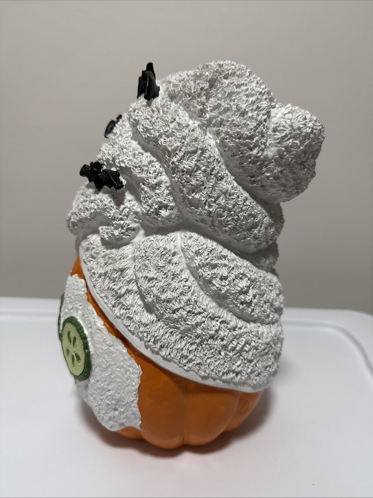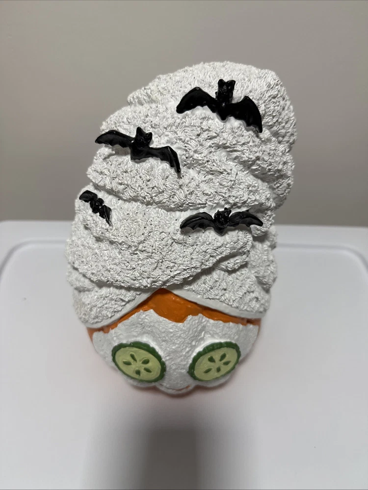 The Spa facial pumpkin head towel with bats is a unique and whimsical collectible item perfect for adding a touch of Halloween charm to your home decor. This towel features a fun and festive design with a pumpkin head and spooky bats, making it an ideal addition to your seasonal decorations. Use it as a quirky accent piece in your bathroom or kitchen, or as a fun towel to use during Halloween festivities. This item is sure to bring a touch of Halloween cheer to your space.