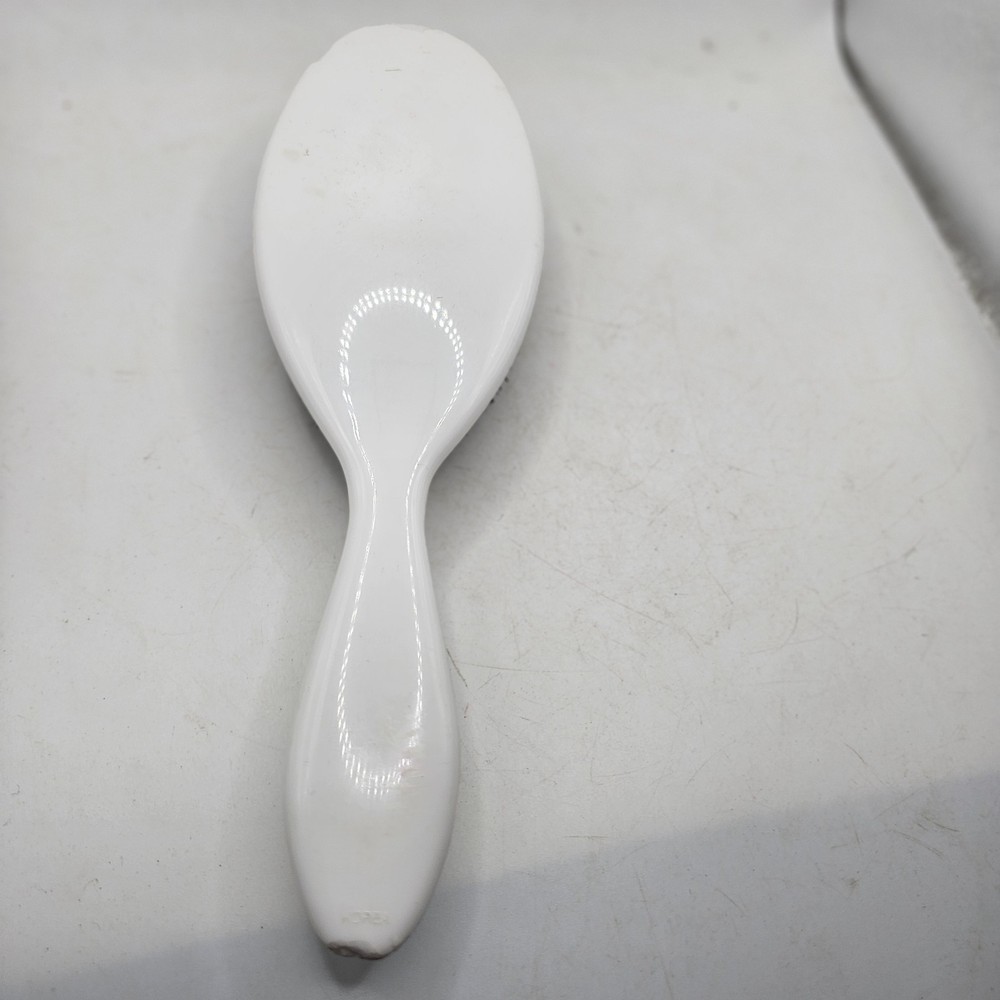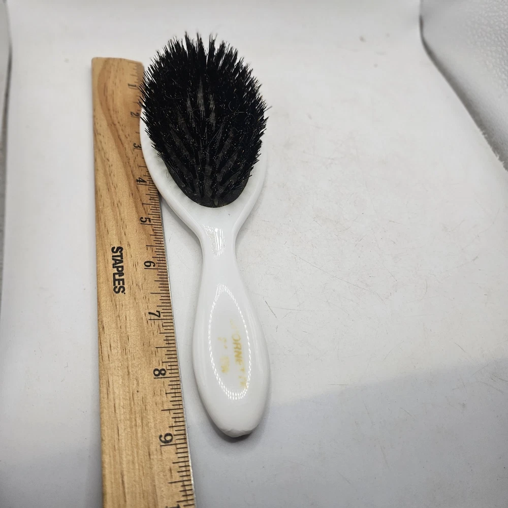 Spornette Classic Gentle Cushion Bristle Oval Hair Brush White Handle Vtg. This is used. There are chips all around. See photos for wear sold as is