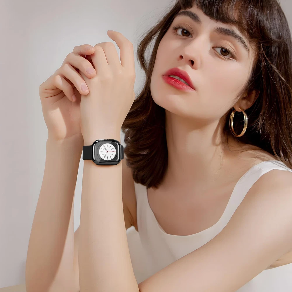 Sport Band Compatible for Apple Watch Band 40mm 41mm 44mm 45mm with Screen Prote Features: Compatible Models: The silicone apple watch band with case compatible with apple watch 40mm 41mm 44mm 45mm, iWatch Series 9/8/7/6/5/4/SE. 40mm/41mm fits for 5.1"-7.1" (130mm-180mm) wrist; 44mm/45mm fits for 5.9" - 7.9" (150mm-200mm) wrist. Please check the model on the back of your iWatch to choose the correct size. Band and Cover Combo: The apple watch bands are made of premium soft silicone, with high quality soft TPU apple watch case, both feels incredibly smooth on skin, delivers all-day breathable comfort for workout, exercises, running, hiking, during sleep and more everyday hustle and bustle. All-round Protection: Our Apple Watch bands attached anti-fall, shockproof and scratch resistant apple watch screen protector case is designed to add a layer of protection to your expensive watch, the premium quality TPU case for 360-degree full protection for your iWatch. No Fear of collision, scratches, daily wear, accidental drops and bumps even in the harsh environment. Easy Installation: The soft nature of the iWatch case ensures that it is easy to adjust and fits the watch perfectly, and the iWatch band comes with pin-and-tuck closure design, which locks onto watch interface precisely and securely. No tool needed,easy to install and remove,provides a secure and comfortable fit for extended wear. What U Get: 1*Apple Watch sport band, 1*Apple Watch protective case, and reliable after-sales support from Adorique. Enjoy a one-year warranty to ensure your peace of mind with your purchase. Features: Compatible Models: The silicone apple watch band with case compatible with apple watch 40mm 41mm 44mm 45mm, iWatch Series 9/8/7/6/5/4/SE. 40mm/41mm fits for 5.1"-7.1" (130mm-180mm) wrist; 44mm/45mm fits for 5.9" - 7.9" (150mm-200mm) wrist. Please check the model on the back of your iWatch to choose the correct size. Band and Cover Combo: The apple watch bands are made of premium soft silicone, with high quality soft TPU apple watch case, both feels incredibly smooth on skin, delivers all-day breathable comfort for workout, exercises, running, hiking, during sleep and more everyday hustle and bustle. All-round Protection: Our Apple Watch bands attached anti-fall, shockproof and scratch resistant apple watch screen protector case is designed to add a layer of protection to your expensive watch, the premium quality TPU case for 360-degree full protection for your iWatch. No Fear of collision, scratches, daily wear, accidental drops and bumps even in the harsh environment. Easy Installation: The soft nature of the iWatch case ensures that it is easy to adjust and fits the watch perfectly, and the iWatch band comes with pin-and-tuck closure design, which locks onto watch interface precisely and securely. No tool needed,easy to install and remove,provides a secure and comfortable fit for extended wear. What U Get: 1*Apple Watch sport band, 1*Apple Watch protective case, and reliable after-sales support from Adorique. Enjoy a one-year warranty to ensure your peace of mind with your purchase. eBay integration by
