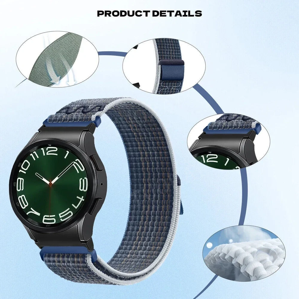 Sport Nylon Band Strap for Samsung Galaxy Watch 7 & FE 6 5 4 40/44mm 4 6 Classic Item description: * Material: Woven Nylon * For Wrist Size: 6.29 inches-8.46 inches (160mm-215mm) Features: 1. Soft, breathable, and lightweight Sport Loop band. 2. The double-layer nylon weave has dense loops on the skin side that provide soft cushioning while allowing moisture to escape. 3. Simple and easy to install and remove, no tools needed. 4. Unique hook and loop fastener design, just stick and lock your smartwatch band easily. 5. The size can be adjusted according to the circumstance of individual wrist. Compatible Model : For Samsung Watch 4 40mm For Samsung Watch 4 44mm For Samsung Watch 4 Classic 42mm For Samsung Watch 4 Classic 46mm For Samsung Watch 5 40mm For Samsung Watch 5 44mm For Samsung Watch 5 Pro 45mm For Samsung Galaxy Watch 6 40mm For Samsung Galaxy Watch 6 44mm For Samsung Galaxy Watch 6 Classic 43mm For Samsung Galaxy Watch 6 Classic 47mm For Samsung Galaxy Watch 7 40mm For Samsung Galaxy Watch 7 44mm For Samsung Galaxy Watch FE 40mm Note: Dark olives are darker in the picture, actually brighter Black is a black with a little red silk, adding its reflection and beauty Package included: 1 x Quick Fit Nylon Loop Watch Band (PS: Smartwatch in the pictures is NOT included) Payment Delivery details Terms of sales About us Contact us Payment 1. PayPal payment accepted only. 2. Items will be shipped to your eBay address. Please make sure it is correct. Delivery details We only ship to ebay address! If you want to ship to other address, please change your ebay address before making a payment. Items will be shipped within 2 business days on payment received. Items are shipped from China Post using Airmail, reach most of the countries within 12 to 25 business days. USA/Canada 10-22 days United Kingdom 12-25 days most countries in Europe 15-30 days Delivery time depends on destination and other factors, it may take up to 20 business days. If you don't receive the item after 30 days, please contact us, we'll investigate and solve the delivery problem. Customs duty is obligation and liability of a citizen in your country, so buyer should be responsible for any tax and custom duty incurred. Generally, the delay or failure delivery is sometimes caused by the policy of different customs. For example, Laser Pointer is unacceptable in some countries. Therefore, please double check your local customs policy carefully before purchase. Or, we will NOT be responsible for any failure delivery related destination customs issue. Terms of sales 1. All products have been checked and packaged in good condition before dispatch. 2. In case the item is defective, please inform us within 30 days of receipt, we will replace a new one. No Refunds are offered. 3. Buyers have to pay for the return cost and we will pay the cost for resend. About us Give me a message through ebay or e-mail. Contact us Please send the message to us. Thanks