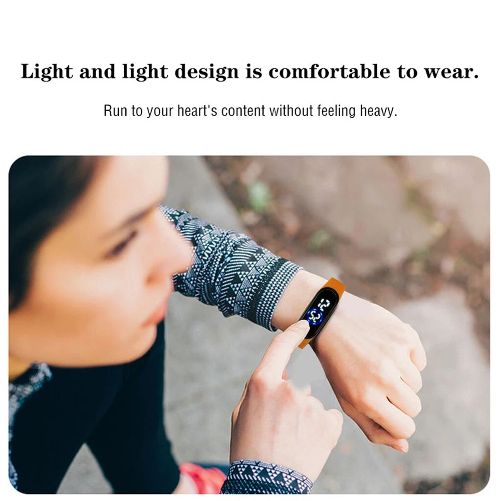 Fashion 50M Waterproof Digital LED Sports Watch Unisex Silicone Band Wrist Watches Feature: Movement: Digital Style: Sport Surface Material: Silicone Display: Digital Strap Material: Silicone Brand new and high quality Shows time digital numbers Display time in numbers indicate the hour, minutes and seconds. Additional White LED function to show the time clearly in dark areas 50 meters waterproof With its elegant and contemporary design, it is very popular A perfect present for friends,families, lovers etc Size:5.2 × 1.8cm Weight:18g Package Content: 1pcs Watch