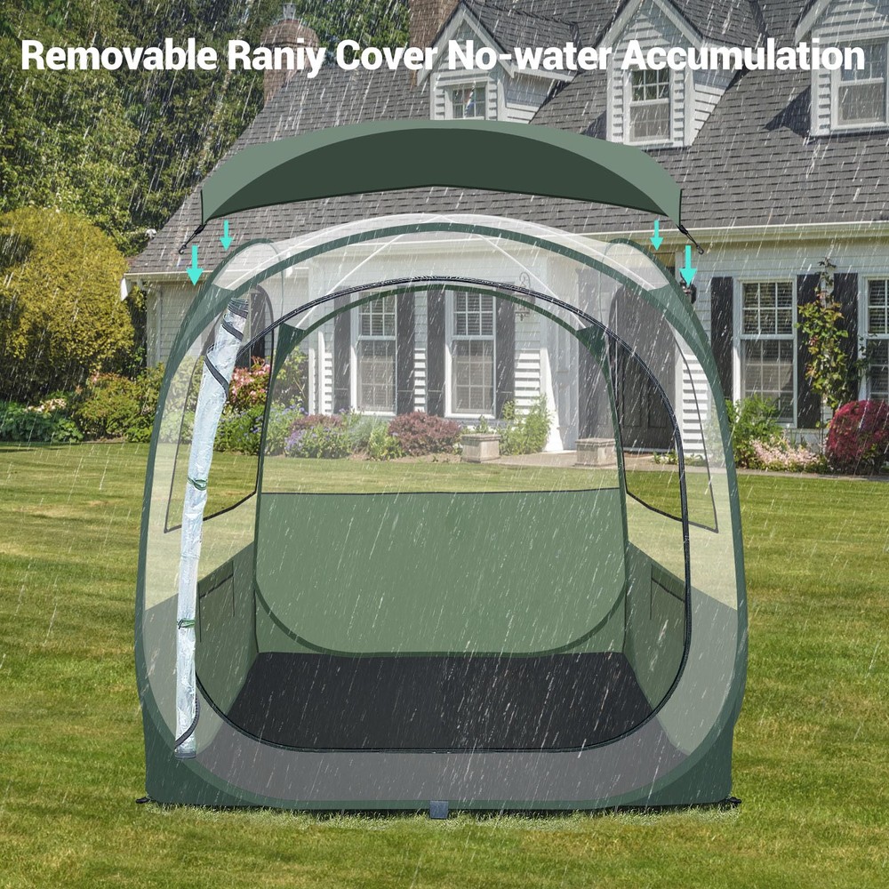 All Weather Sports Tent: Crafted with high-grade, water-resistant PVC and a PE floor, our sport tent ensures you stay dry and protected no matter the weather. The top rain cover and UV 50+ protection shield you from harsh sun rays and unexpected rain showers. Spacious Accommodation: Our weather 4 person pod tent measures 63"L x 63"W x 63"H, comfortably fitting 4-6 people, making it ideal for families or groups. Enjoy the game or the great outdoors together with ample room for everyone. Unparalleled 540-Degree View: Experience the ultimate viewing experience with our pop-up clear tent, designed with ultra-clear thick PVC for a full 540-degree panoramic view. Perfect for fans who don't want to miss a single moment of the action, whether it’s sports events, wildlife, or scenic landscapes. Effortless Setup in Seconds: Forget the hassle of complicated assembly! Our bubble tent features an advanced pop-up mechanism that allows for instant setup and easy takedown, letting you focus more on enjoying your outdoor activities. Mesh Ventilation and Privacy: There are 3 breathable vents with PVC and mesh on the two side windows to provide good ventilation in hot weather, both breathable and mosquito proof. Our unique sports pop-up tent design features three water-resistant opaque sides that enhance privacy while maintaining visibility. Ideal for families and groups who value both seclusion and the joy of watching their favorite events in comfort. Lightweight and Portable: Weighing just 17 pounds, our igloo tent dome includes a durable carrying bag for easy transportation and storage. Whether heading to a game, beach, or campsite, it’s perfectly portable for all your adventures. Versatile Outdoor Use: Beyond sports events, this tent is great for fishing, camping, and family picnics, providing a safe and comfortable outdoor haven. It’s also an ideal choice for photographers and nature observers who require a stable, clear view enclosure.