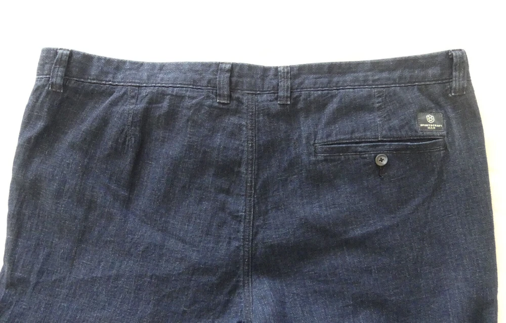 These awesome PANTS look like they’re jeans, but they’re a lighter-weight material. They are dark blue, in a straight style and fasten with a zip and button. They have a pocket on each side at the front, and a button-up pocket at the back. There is a spare button in a bag on the label, should you ever need it. The style is ‘Lewin Indigo Pant’. They are from SPORTSCRAFT MAN and are a size 40, but please check the measurements below, to ensure a good fit. The approximate measurements are: Waist: 112cm Hips: 130cm Length: 108cm Inside Leg: 82cm Front Rise: 31cm They are Brand New, With Tags (rrp 199.99). Lots more information about these jeans can also be found in Item Specifics. JJ016 I rate my items in the following way: BNWT / BNWOT: Brand New, With Tags or Brand New, Without Tags (some part of the tag will still be attached). New items that have never been worn. EXCELLENT: has been worn, but shows very few actual signs of wear. GOOD: has been worn and is showing light signs of wear. FAIR: has been worn and is showing more signs of wash/wear - or has a small fault, which will be clearly described in the listing I am only human and can make mistakes in my listings and descriptions - so if for any reason you are unhappy with your purchase, please contact me using the 'Contact Seller' button first, so we can quickly resolve the issue. This item comes from a SMOKE FREE HOME but the odd puppy hair may drift in due to the fact she is my darling shadow throughout the day.