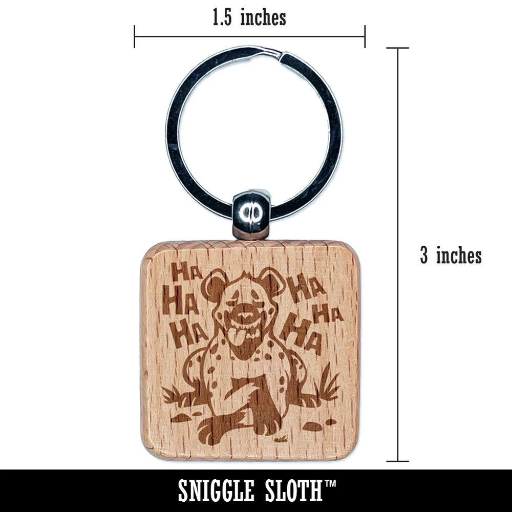 Spotted Hyena Laughing and Smiling Engraved Wood Square Keychain Tag Charm