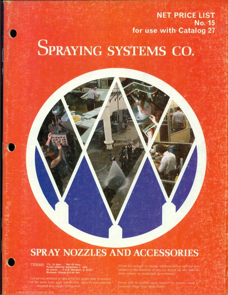 Spraying Systems 1966 Industrial Spray Nozzle Catalog 25A AND 1978 PRICE LIST #15 8 1/2" X 11" SIZE (3) HOLE PUNCHED 25A (64) PAGES 15 (27) PAGES FULLY ILLUSTRATED