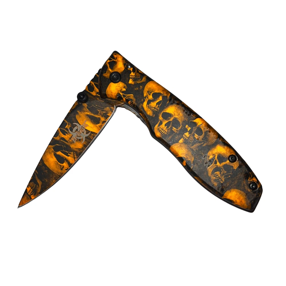 Undead survival has never been so easy with the Z-Slayer spring-assisted knife, skulls! This knife features some of the best specs of any Trigger Action knife out there, making it the ultimate pocket knife for Undead annihilation. The Trigger Action blade ejects with ease and has a razor-sharp blade edge, making it especially easy to slice up Undead flesh in a foggy graveyard. The Z-Slayer series never disappoints, and this knife is no exception, featuring the Z-Slayer logo etched on the blade. Features: Undead skulls finish Super fast Trigger Action blade Real surgical steel Razor-sharp blade edge - 2.75 inch blade Pocket clip included on handle - 3.75 inch handle Lightweight knife only 3.7 ounces Get your hands on this knife and never be without Undead protection. We strive for positive Feedback on all transactions. Your satisfaction is very important to us, if you experience a problem of any kind with your purchase please contact us first before leaving any feedback or opening any claims, any issues will be resolved more efficiently if you contact us first and deal directly with us. We do stand behind our products and will do anything in our power to make sure that you feel satisfied with your purchase. If you are not happy with your purchase, quality, DOA items. PLEASE email us , We would be more than happy to replace the item. Thank you for the cooperation.