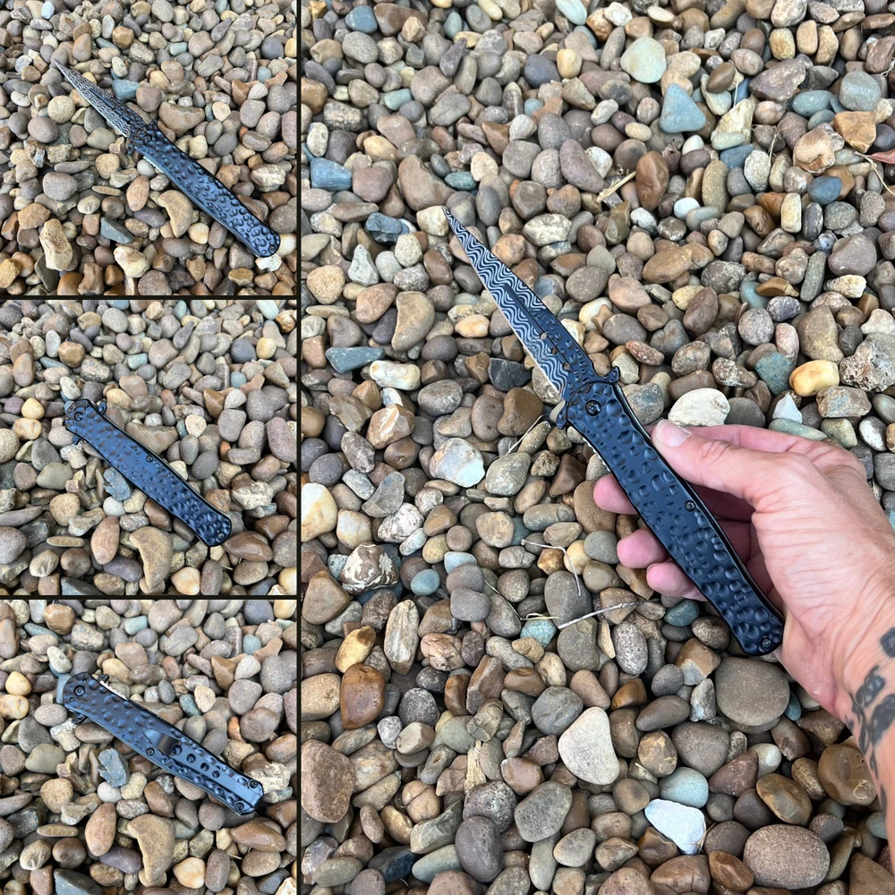 Introducing our premium 8.5" stiletto knife, a masterpiece crafted with precision and style. The striking hammered black finish adds a touch of modern sophistication, while the lightning-fast assisted opening mechanism ensures you're always ready for action. Key Features: 8.5" Overall Length: Commanding presence and impressive size. 4" Stainless Steel Blade: Durable and razor-sharp cutting edge. Hammered Black Finish: Unique and eye-catching design. Spring Assisted Opening: Quick and effortless deployment. Black Handle: Stylish and ergonomic for a comfortable grip. Perfect for: Outdoor enthusiasts Knife collectors Everyday carry (EDC) Tactical purposes Elevate Your Knife Collection Experience the perfect blend of form and function with this exceptional stiletto knife. Order yours today and discover the power and style of Italian craftsmanship. We strive for positive Feedback on all transactions. Your satisfaction is very important to us, if you experience a problem of any kind with your purchase please contact us first before leaving any feedback or opening any claims, any issues will be resolved more efficiently if you contact us first and deal directly with us. We do stand behind our products and will do anything in our power to make sure that you feel satisfied with your purchase. If you are not happy with your purchase, quality, DOA items. PLEASE email us , We would be more than happy to replace the item. Thank you for the cooperation.