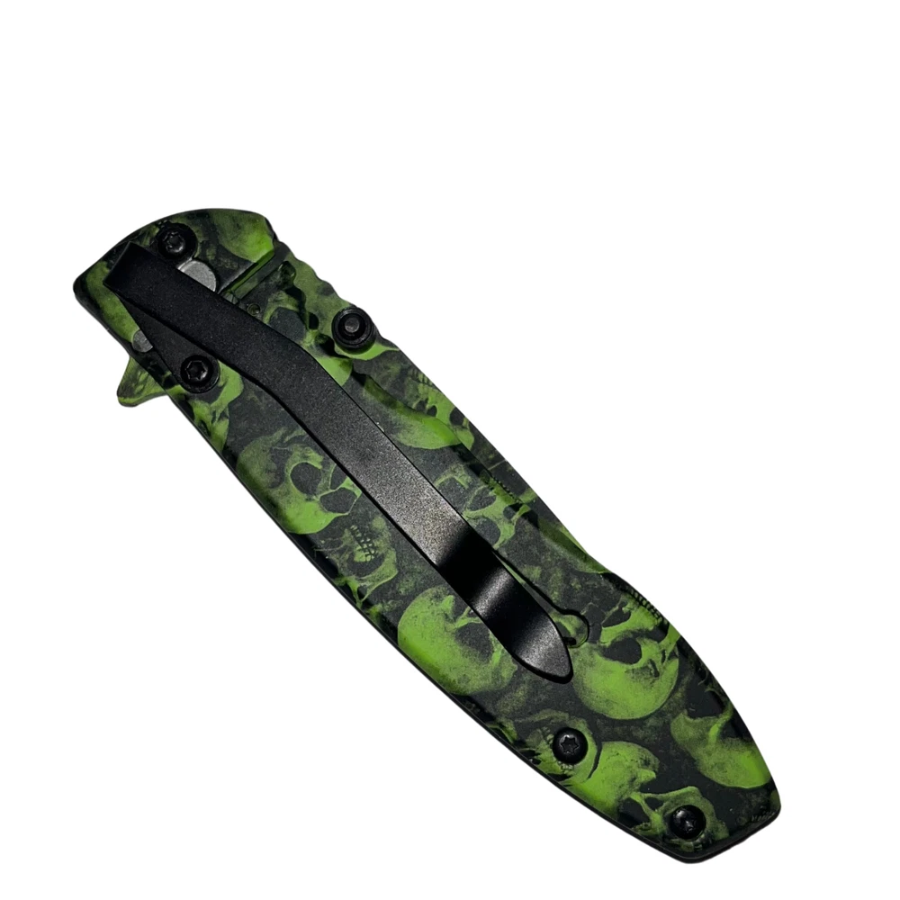 Undead survival has never been so easy with the Z-Slayer spring-assisted knife, skulls! This knife features some of the best specs of any Trigger Action knife out there, making it the ultimate pocket knife for Undead annihilation. The Trigger Action blade ejects with ease and has a razor-sharp blade edge, making it especially easy to slice up Undead flesh in a foggy graveyard. The Z-Slayer series never disappoints, and this knife is no exception, featuring the Z-Slayer logo etched on the blade. Features: Undead skulls finish Super fast Trigger Action blade Real surgical steel Razor-sharp blade edge - 2.75 inch blade Pocket clip included on handle - 3.75 inch handle Lightweight knife only 3.7 ounces Get your hands on this knife and never be without Undead protection. We strive for positive Feedback on all transactions. Your satisfaction is very important to us, if you experience a problem of any kind with your purchase please contact us first before leaving any feedback or opening any claims, any issues will be resolved more efficiently if you contact us first and deal directly with us. We do stand behind our products and will do anything in our power to make sure that you feel satisfied with your purchase. If you are not happy with your purchase, quality, DOA items. PLEASE email us , We would be more than happy to replace the item. Thank you for the cooperation.
