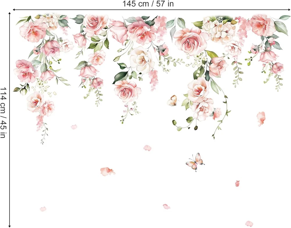It can be stuck onto any clean, dry, non-textured smooth surfaces: walls, windows, tiles, furniture, mirrors, even your refrigerators. decalmile wall stickers are made of high quality, bright and colorful, easy to peel and stick, removable and waterproof. decalmile pink rose flower vine wall decals are perfect to decorate girls bedroom, living room, and baby nursery room. Come in 3 sheets, sheet size: 30cm x 90cm (11.8" × 35.4"), recommend finished size: 145cm x 114cm(57.1" x 44.9") or depending on your preference to DIY. If you're not satisfied with your purchase or have any problems on installation, please feel free to contact us and we will reply and help to solve problems within 24 hours. Product Description DECALMILE FLOWER WALL DECALS Add Chill Vibes Various Choices with Unique Design decalmile stock a huge selection of stunning wall stickers catering to all ages and tastes. We promise all stickers are non-toxic and top quality PVC material Wall Decals for Kids Become an interior decorator and transform your living space from ordinary to extraordinary with decalmile unique wall stickers. Pink Wall Decor Add to Cart Add to Cart Add to Cart Add to Cart Add to Cart Add to Cart Add to Cart Customer Reviews 4.6 out of 5 stars 130 4.8 out of 5 stars 15 4.6 out of 5 stars 20 3.7 out of 5 stars 12 4.5 out of 5 stars 199 4.6 out of 5 stars 510 4.4 out of 5 stars 387 Price $18.99 $ 18 . 99 $16.99 $ 16 . 99 $16.99 $ 16 . 99 $9.99 $ 9 . 99 $11.99 $ 11 . 99 $21.99 $ 21 . 99 $12.99 $ 12 . 99 Removable ✔ ✔ ✔ ✔ ✔ ✔ ✔ Material PVC PVC PVC PVC PVC PVC PVC Installation Type Peel & Stick Peel & Stick Peel & Stick Peel & Stick Peel & Stick Peel & Stick Peel & Stick Theme Flower Vine Flower Blossom Tree Flower Blossom Tree Vine Color Pink Pink Blue Red Pink Pink Pink Flower Wall Decor Add to Cart Add to Cart Add to Cart Add to Cart Add to Cart Add to Cart Add to Cart Customer Reviews 4.4 out of 5 stars 78 4.6 out of 5 stars 207 4.5 out of 5 stars 439 4.5 out of 5 stars 155 4.7 out of 5 stars 70 4.5 out of 5 stars 148 4.6 out of 5 stars 1,849 Price $11.99 $ 11 . 99 $12.99 $ 12 . 99 $11.99 $ 11 . 99 $12.99 $ 12 . 99 $12.99 $ 12 . 99 $12.99 $ 12 . 99 $11.99 $ 11 . 99 Removable ✔ ✔ ✔ ✔ ✔ ✔ ✔ Reusable ✘ ✘ ✘ ✘ ✘ ✘ ✘ Material PVC PVC PVC PVC PVC PVC PVC Installation Type Peel & Stick Peel & Stick Peel & Stick Peel & Stick Peel & Stick Peel & Stick Peel & Stick Theme Flower Flower Flower Sunflower Flower Flower Sunflower What types of surfaces can the wall decals be applied to? Our wall stickers can be applied to just about any clean and smooth surface that is free of dust, grease, or other contaminants. DecalMile wall stickers may not adhere to heavily-textured surfaces but can adhere to lightly textured wall. How long will my wall sticker stay up? DecalMIile wall stickers are not intended for permanent application. However, they can last for months or years depending on the surface and environment. Will the wall decals damage my wall? When walls have been prepared as recommended and proper application, most people have no wall damage issue while removing. Please be aware that there is potential for wall damage. Freshly painted walls should be allowed to cure for at least 4 weeks. I installed a wall decal but it is starting to peel off. What do I do? If part of a wall sticker starts to come off a surface, you can use washable glue, such as a glue stick or wallpaper paste or glue, to reattach it.