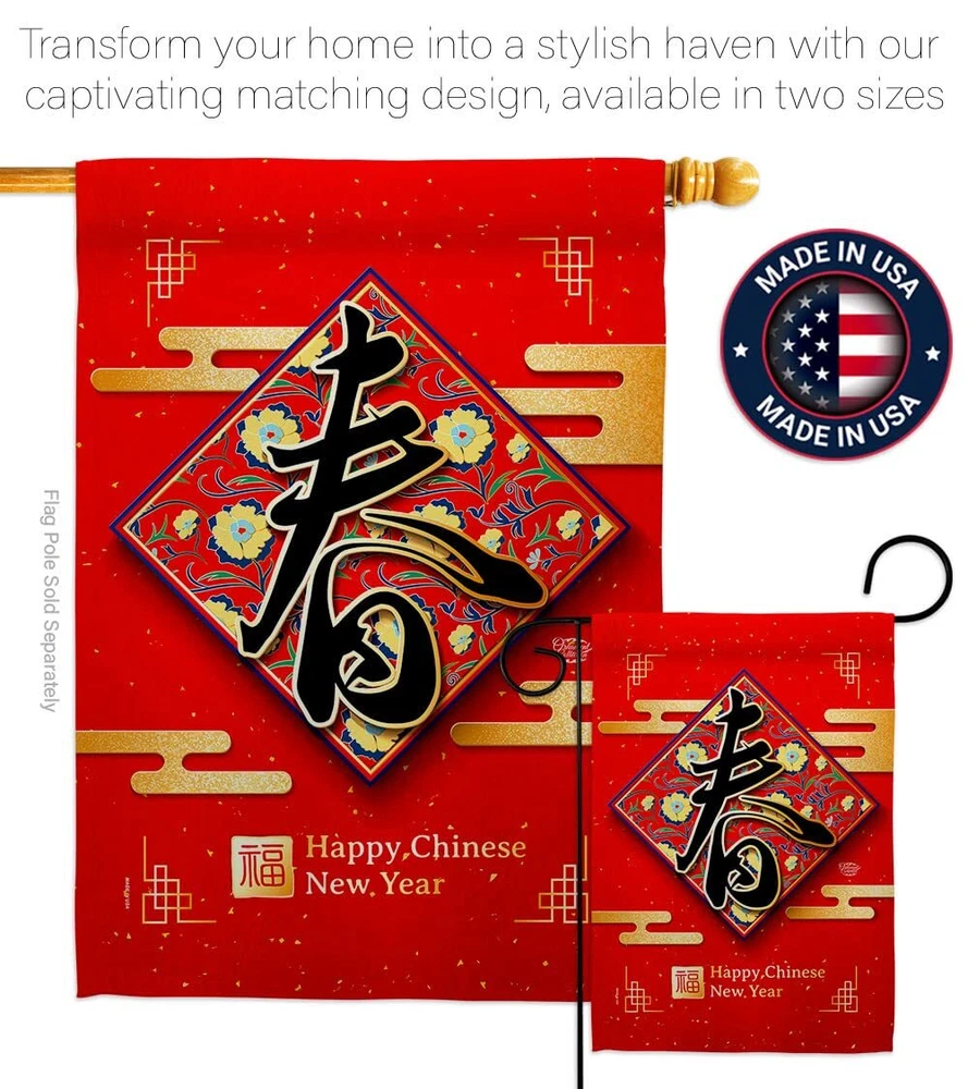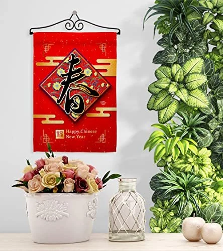 Spring New Year Garden Flag Set Wall Hanger Lunar Good Luck Prosperous Season...