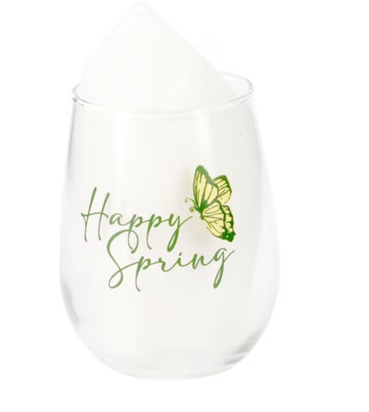 This set of four stemless wine glasses is perfect for celebrating the holiday season with a modern touch. The glasses feature a solid clear color with a happy spring-themed design, making them ideal for bachelorette parties, anniversaries, and all occasions. Crafted from glass, the set includes tumblers and drinking glasses alongside the wine glasses, all of which are dishwasher safe for easy cleaning. These festive glasses add a touch of cheer to any gathering and are suitable for adult use.