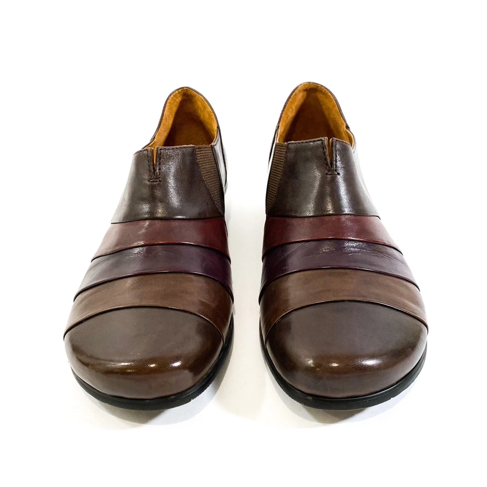 Spring Step Diplomat Multi-Stripe Brown Leather Loafers Women's Size US 7.5 / EU 38 Please look at all pictures (and zoom in) ~ they are part of the description! Item pictured is the exact item you will receive. Very good pre-owned condition! Outsoles have light wear. (see photo # 11) Small scuff on heel. (see last photo) Stamp marks on inside back of heels ~ look like part of construction. (see last photo) NO ORIGINAL BOX Carefully packaged and box-shipped ~ USPS calculated shipping 30-day free returns accepted - Original shipping cost will NOT be refunded. Items must be returned in the same condition received or may be subject to return fees. New items must be unused/unworn, tags still attached/packaging still intact. Pre-owned items must not have additional wear or use. Clean, smoke-free, cat friendly home. Please message prior to purchasing if you have any questions! Thanks for looking!