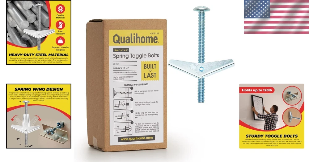 Spring Wing Design Hollow Wall Anchors - Pack of 20, Rust-Resistant Toggle Bolts ‹ › ‹ › ‹ › ‹ › ‹ › ‹ › ‹ › ‹ › ‹ › Spring Wing Design Hollow Wall Anchors - Pack of 20 -Rust-Resistant Toggle Bolts Features: Supports twice as much load in a smaller hole than regular wing anchors Made of high-quality steel for strength, durability, and resistance to rust and corrosion Spring wing design for even weight distribution and stability Easy DIY installation with included instructions Wide application for anchoring objects in various settings Benefits: Reliable and sturdy anchor for heavy items Steel material ensures long-lasting stability Easy to install without special skills required Versatile for use in different wall types Pack of 20 anchors for multiple hanging projects Why choose our Spring Wing Design Hollow Wall Anchors? When it comes to hanging heavy items on your walls, our Spring Wing Design Hollow Wall Anchors are the most reliable choice. Made of high-quality steel, these toggle bolts offer strength, durability, and resistance to rust and corrosion. The spring wing design ensures even weight distribution and stability, making them perfect for securing heavy objects to walls. With easy DIY installation and a pack of 20 anchors, you can hang practically anything in various settings. Don't settle for flimsy anchors - choose our sturdy toggle bolts for all your hanging projects! Shipping Free & Fast Shipping - We offer free shipping to most of the USA with a normal delivery time of 3-7 days. However, due to the current situation, additional delivery time (up to 3 weeks) may be required for some items. Alternative Carriers - We may use alternative carriers (e.g. USPS, FedEx, UPS, etc.) to ensure your package arrives safely and on time. Due to the use of multiple carriers, we are unable to provide a tracking number automatically. Handling Time - Orders are processed and shipped within 1-2 business days of receiving cleared payment. Shipping Restrictions - Shipping to Alaska, Hawaii, Puerto Rico, Guam, and other US territories may incur shipping charges or delivery restrictions. Please contact us before ordering, or your order can be refunded/cancelled. State Restrictions - There may be restrictions based on your state of purchase. For example, certain items may not be shipped to California due to state regulations. Contact for Tracking Updates - If you require tracking updates or have any concerns about the delivery of your order, please feel free to contact us, and we will be happy to assist you. Return 30-Day Hassle-Free Returns - We want you to be completely satisfied with your purchase. If you are not, you can return the item within 30 days of receiving it for a full refund or exchange. Easy Return Process - To start a return, simply contact us and we will provide you with a prepaid return shipping label and detailed instructions. Restocking Fee - There are no restocking fees for returns. However, the buyer is responsible for return shipping costs if the return is not due to a seller's error. Refund Processing Time - Refunds will be processed within 5 business days of receiving the returned item in its original condition. Payment We accept all major credit cards, PayPal, and Apple Pay for your convenience. Your payment information is secure and encrypted to ensure a safe and seamless transaction. Please complete your payment within 3 days of purchase to avoid any delays in shipping. Feedback Your feedback is extremely important to us. We strive to provide the best products and customer service possible. If you are satisfied with your purchase, please take a moment to leave us a positive review. If you have any concerns or issues with your order, please contact us before leaving negative feedback. We are committed to resolving any problems and ensuring your satisfaction. Contact Us If you have any questions or concerns, please feel free to reach out to our customer support team. You can contact us through the eBay messaging system. We are available Monday to Friday, 9:00 am to 5:00 pm EST, and we will do our best to respond to your inquiry within 24 hours. Thank you for supporting our small family business!