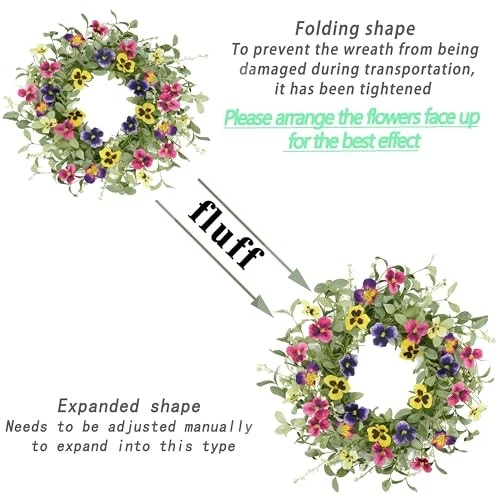 Return Policy Fast Delivery Trusted seller Spring Wreaths for Front Door Pansy Wreath with Colorful Pansy for Front Door Indoor Outdoor Farmhouse Home Porch Wall Window Festival Wedding Decoration Product Description 【Accessories are abundant】- 20 inch wreath sets off the lush green leaf decoration, pink pansy flower adds white flower seeds to make the whole wreath more vivid and plump, for the best display, please take the wreath out of the box and arrange it carefully 【Best Friends for spring summer wreath】- Suitable for spring, wedding, home, wall, window, front door, fireplace, living room, bedroom, dining room, fireplace, porch, window and other indoor and outdoor decoration. Add glamour to your spring and summer season with this striking daisy wreath. 【Multi-occasions】- The spring summer wreath can be used indoor or outdoor, place it on your front door, or hang it above your fireplace. It's also perfect for decorating weddings, birthdays, stages, bedrooms, offices, dining rooms, and others. 【Easy to Clean】- When used outdoors, please avoid rain and snow.This spring summer wreath is convenient to clean, just wipe it with a try towel to make the wreath like brand new. The green leaves and branches are not easily falling apart. This wreath can be used for a long time. 【Packaging Design】 - we pack the wreath to gift box and we Tighten the wreath when packing so that the wreath can be protected when delivery,pls open,fluff the wreath and adjust the branches and pansy flowers,the maximum size of wreath can be 20". Shipping Returns Payment Shipping Shipping is FREE to all addresses other than APO/PO boxes in the lower 48 states. All our stock ships from US-based warehouses. Shipped via USPS or UPS (depending on location and package weight) Unless stated otherwise, all orders will ship within 24-72 hours of your payment being processed. Check our feedback to see the great reviews of FAST shipping we offer. Returns Seller does not accept returns Payment We currently accept payment via eBay managed payments only. Once payment is cleared, we will dispatch your shipment within 1-3 business days. Please refer to the "Shipping" tab for more information regarding shipping speed to your destination.