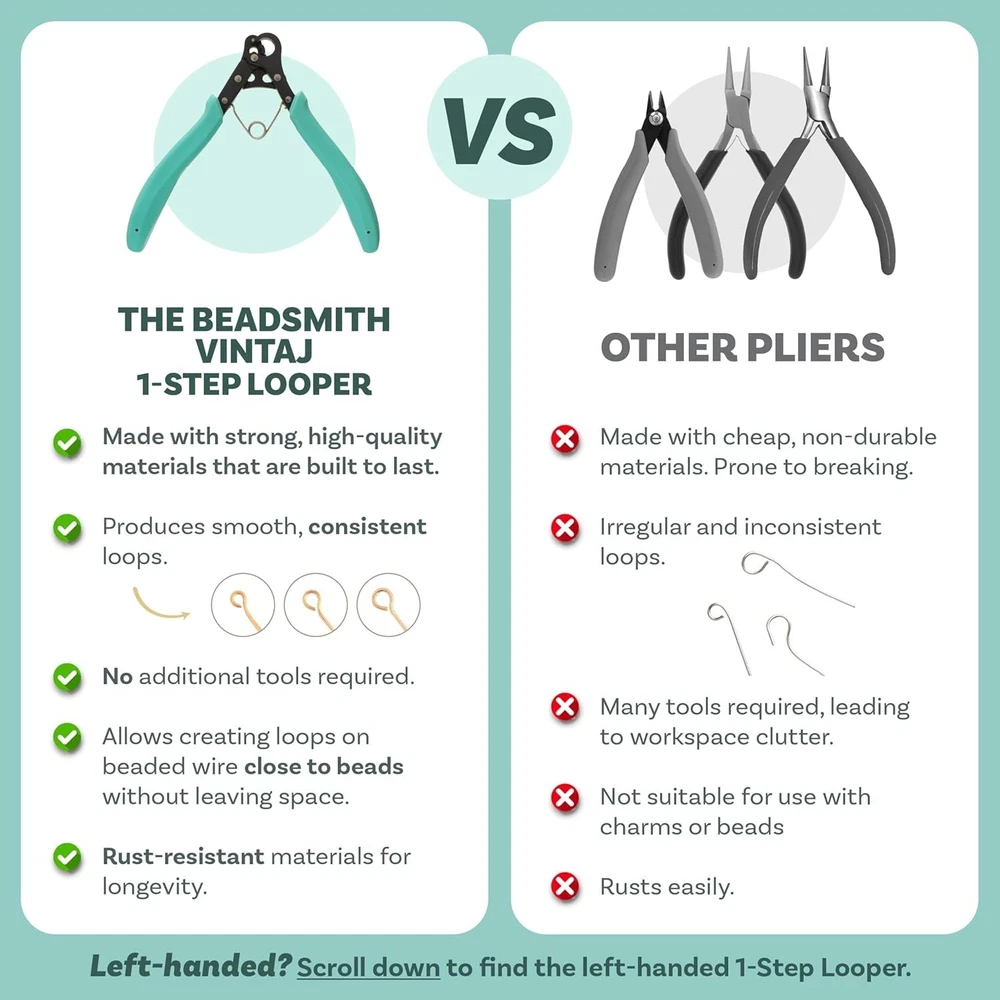 Spring-Action Vintaj One Step Looper for 1.5mm Loops - Jewelry Making Essential ‹ › ‹ › ‹ › ‹ › ‹ › ‹ › ‹ › ‹ › ‹ › ‹ › Spring-Action Vintaj One Step Looper - Jewelry Making Essential for Consistent Loops Features: Create precise 1.5 mm loops effortlessly with 24-18 gauge wire, including dead-soft and half-hard wire, copper, brass, and craft wire. Cuts and loops wire in one simple step for seamless crafting without hassle. Upper jaw hole supports longer wire use, making it perfect for a variety of projects. Built-in spring-action handle reduces hand fatigue, ensuring comfort during extended use. Ideal for creating eye pins, head pins, and custom wire shapes for jewelry making. Benefits: Achieve consistent results every time, enhancing the quality of your handcrafted jewelry. Easy-to-use design means you can enjoy the creative process, whether you’re a beginner or seasoned jewelry maker. Comfortable grip facilitates repetitive use without discomfort. Versatile tool suitable for a range of projects, from earrings to statement pieces. Why choose the Spring-Action Vintaj One Step Looper? Elevate your jewelry-making experience with our Spring-Action Vintaj One Step Looper. Crafted from , durable materials, this essential tool enables you to create flawless loops with confidence and precision. Imagine transforming your creative ideas into stunning pieces of jewelry without the frustration of uneven results or tedious processes. With the comfort of the spring-action handle, you can enjoy lengthy crafting sessions, allowing your imagination to flourish. Perfect for both casual crafters and dedicated artisans, this tool is your key to unlocking endless jewelry design possibilities. Get ready to impress yourself and others with your exquisite jewelry creations by adding the Spring-Action Vintaj One Step Looper to your toolkit today! Shipping Free & Fast Shipping - We offer free shipping to most of the USA with a normal delivery time of 3-7 days. However, due to the current situation, additional delivery time (up to 3 weeks) may be required for some items. Alternative Carriers - We may use alternative carriers (e.g. USPS, FedEx, UPS, etc.) to ensure your package arrives safely and on time. Due to the use of multiple carriers, we are unable to provide a tracking number automatically. Handling Time - Orders are processed and shipped within 1-2 business days of receiving cleared payment. Shipping Restrictions - Shipping to Alaska, Hawaii, Puerto Rico, Guam, and other US territories may incur shipping charges or delivery restrictions. Please contact us before ordering, or your order can be refunded/cancelled. State Restrictions - There may be restrictions based on your state of purchase. For example, certain items may not be shipped to California due to state regulations. Contact for Tracking Updates - If you require tracking updates or have any concerns about the delivery of your order, please feel free to contact us, and we will be happy to assist you. Return 30-Day Hassle-Free Returns - We want you to be completely satisfied with your purchase. If you are not, you can return the item within 30 days of receiving it for a full refund or exchange. Easy Return Process - To start a return, simply contact us and we will provide you with a prepaid return shipping label and detailed instructions. Restocking Fee - There are no restocking fees for returns. However, the buyer is responsible for return shipping costs if the return is not due to a seller's error. Refund Processing Time - Refunds will be processed within 5 business days of receiving the returned item in its condition. Payment We accept all major credit cards, PayPal, and Apple Pay for your convenience. Your payment information is secure and encrypted to ensure a safe and seamless transaction. Please complete your payment within 3 days of purchase to avoid any delays in shipping. Feedback Your feedback is extremely important to us. We strive to provide the best products and customer service possible. If you are satisfied with your purchase, please take a moment to leave us a positive review. If you have any concerns or issues with your order, please contact us before leaving negative feedback. We are committed to resolving any problems and ensuring your satisfaction. Contact Us If you have any questions or concerns, please feel free to out to our customer support team. You can contact us through the eBay messaging system. We are available Monday to Friday, 9:00 am to 5:00 pm EST, and we will do our best to respond to your inquiry within 24 hours. Buy it now and enjoy a pleasant shopping experience! Unit Quantity: 1.0 count Suitable For: Bead Stringing,Cutting,Engraving,Jewelry Making,Metalsmithing,Soldering,Wire Working Material: Rubber,Metal Set Includes: Plier Type: Plier Color: Aqua