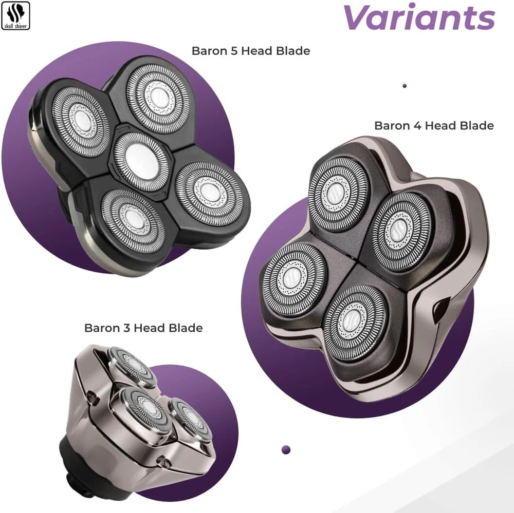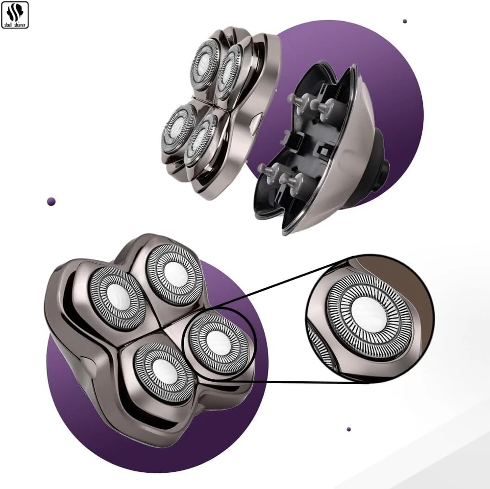 Color: Silver Number of Heads: 1 Department: Men Item Length: 5 in UPC: Does not apply Head Type: 4 Head Rotary gtin13: Does not apply Recommended Uses For Product: Beard, Scalp Product Dimensions: 5.12 X 4.61 X 2.17 Inches; 3.53 Ounces Body Area: Head, Face, Scalp, Beard Type: Head Shaver Motor Type: Rotary Power Source: Battery Brand: Unbranded Features: Easy Clean System, Quick & Efficient Shave, Advanced Contouring, Premium Japanese Steel, Reduced Irritation, Versatile Shaving Options, Sealed Drivetrain, Large Shaving Chambers Item Weight: 3.53 ounces