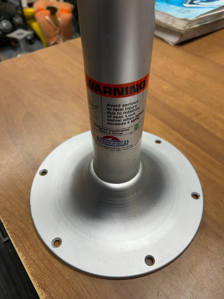 New Old Stock - #2 Spring Field Stationary Pedestal Seat Base 10" Diam Base Plate 9" Diam Mounting Holes 10" Overall Height 2-3/8" OD Post Locking Hole No Hardware As-Is See Pictures
