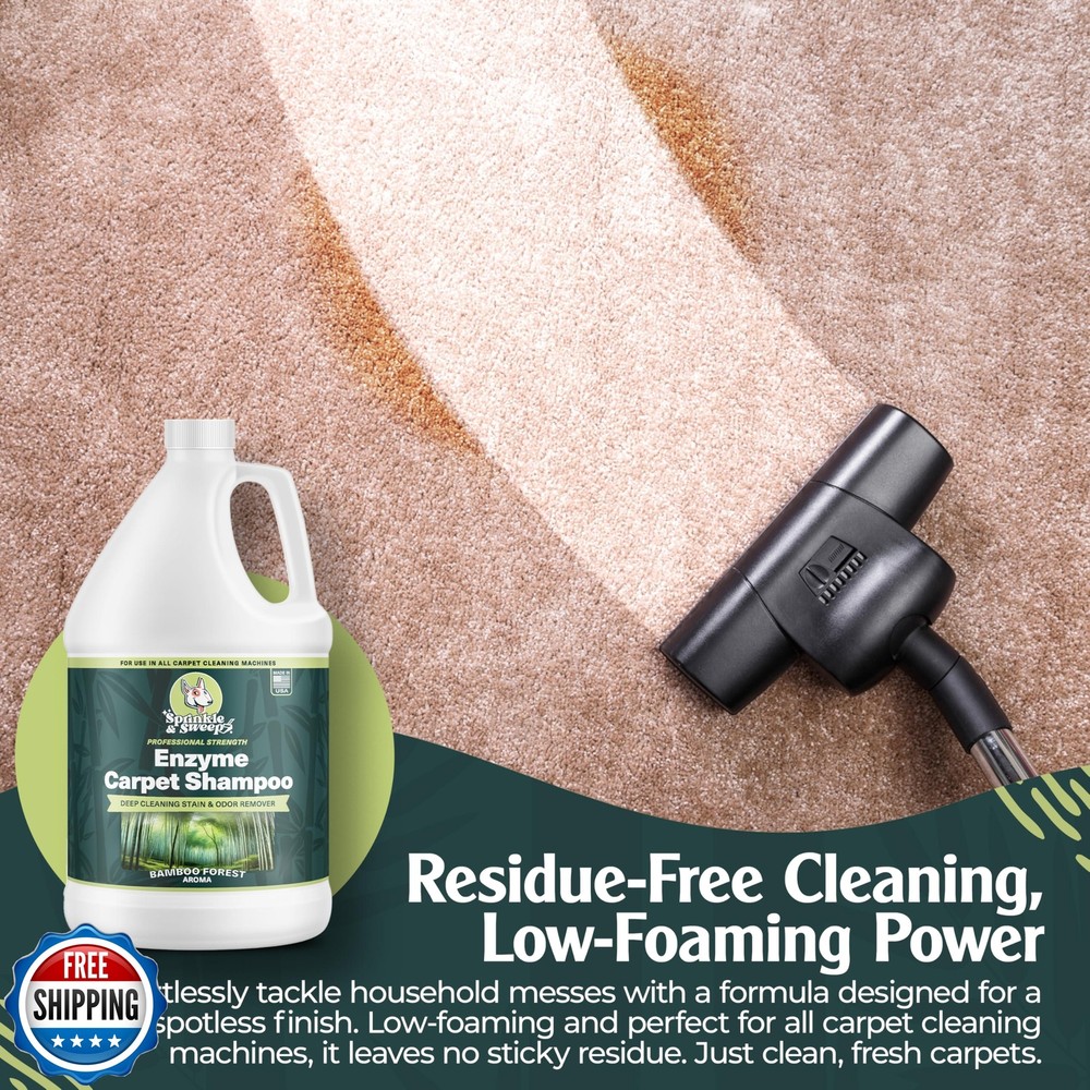 Sprinkle and Sweep Enzyme Carpet Shampoo - Carpet Cleaner Solution to Eliminate Tough Stains and Neutralize Odors at the Source - Car, Furniture, Carpets and Rug Cleaner - Use with All Machines (1 Gallon) Features POWERFUL ENZYMATIC CLEANING: This carpet cleaning solution for machines uses advanced enzymes to break down tough stains and odors at a molecular level, making it a reliable carpet cleaner for pets accidents, food spills, and more RESIDUE-FREE FORMULA: Our low-foaming carpet shampooer solution leaves no sticky residue behind, keeping carpets cleaner for longer; this carpets stain remover and odor neutralizer prevents future stains and re-soiling SAFE & FAMILY-FRIENDLY: Carefully formulated to be safe for use in homes with children and pets, our rug cleaners for carpet are also a practical pet carpet cleaner, ensuring effective cleaning even for tough pet accidents, while being gentle on your home and the environment OPTIMIZED FOR CARPET EXTRACTORS: Specifically designed for rug shampooers for carpet, carpet extractors, and wet/dry vacuums, this enzyme carpet cleaner shampoo works deeply and efficiently to remove contaminants from carpet fibers VERSATILE & LONG-LASTING: Effective on carpets, rugs, upholstery, furniture, and car interiors, this concentrated carpet cleaner shampoo delivers powerful cleaning with exceptional value in every bottle Shipping Free & Fast Shipping: We offer free shipping to most of the USA with a normal delivery time of 3-7 days. However, due to the current situation, additional delivery time (up to 3 weeks) may be required for some items. Alternative Carriers: We may use alternative carriers (e.g., USPS, FedEx, UPS) to ensure your package arrives safely and on time. Due to the use of multiple carriers, we are unable to provide a tracking number automatically. Handling Time: Orders are processed and shipped within 1-2 business days of receiving cleared payment. Shipping Restrictions: Shipping to Alaska, Hawaii, Puerto Rico, Guam, and other US territories may incur shipping charges or delivery restrictions. Please contact us before ordering, or your order can be refunded/cancelled. State Restrictions: Certain items may not be shipped to California due to state regulations. Contact for Tracking Updates: If you require tracking updates or have any concerns about the delivery of your order, please feel free to contact us, and we will be happy to assist you. Return Policy 30-Day Hassle-Free Returns: If you are not completely satisfied with your purchase, you can return the item for free within 30 days of receiving it for a full refund or exchange. Easy Return Process: Contact us, and we will provide you with a prepaid return shipping label and detailed instructions. No Restocking Fee: There are no restocking fees for returns. However, the buyer is responsible for return shipping costs if the return is not due to a seller"s error. Refund Processing: Refunds will be processed within 1 business day of receiving the returned item in its original condition. Feedback Your feedback is extremely important to us. We strive to provide the best products and customer service possible. If you are satisfied with your purchase, please take a moment to leave us a positive review. If you have any concerns or issues with your order, please contact us before leaving negative feedback. We are committed to resolving any problems and ensuring your satisfaction. Contact Us If you have any questions or concerns, please feel free to reach out to our customer support team. You can contact us through the eBay messaging system. We are available Monday to Friday, 9:00 am to 5:00 pm EST, and we will do our best to respond to your inquiry within 24 hours. Thank you for supporting our small family business!