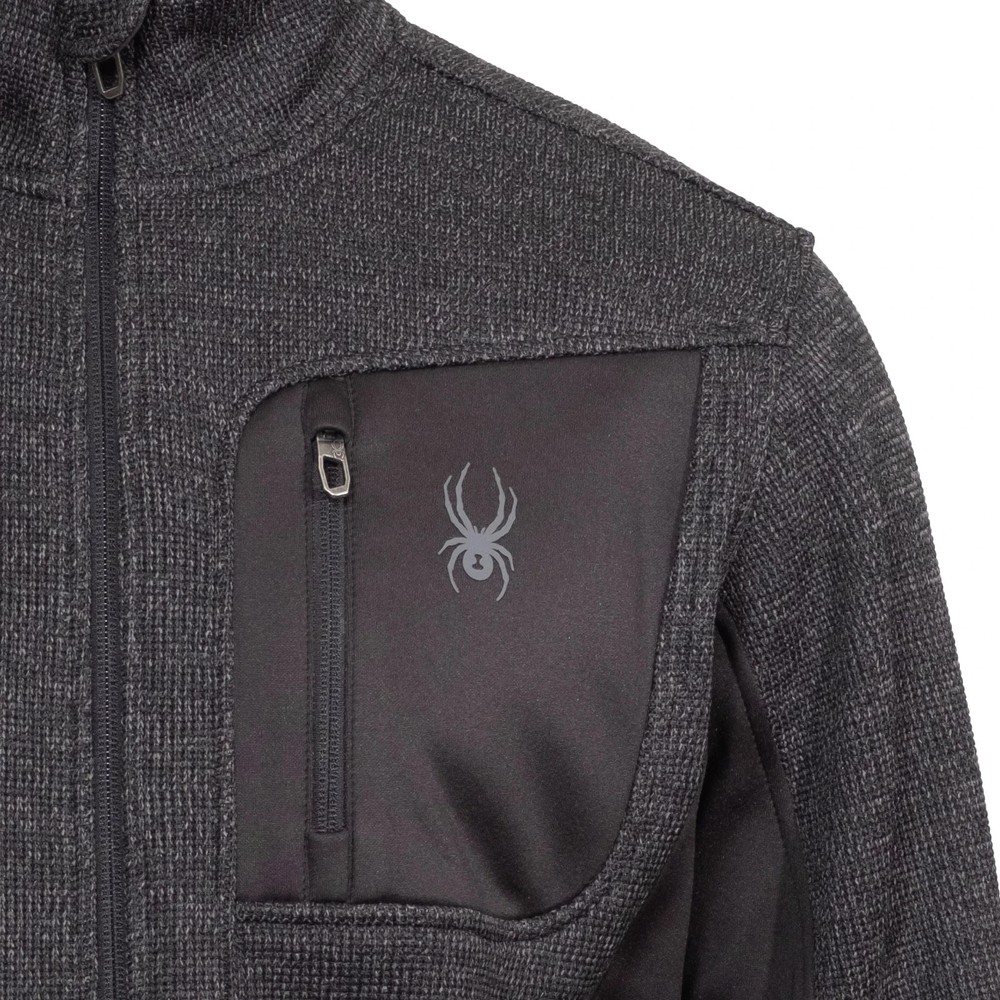Spyder Men's Full Zip Relaxed Fit Stand Collar Jacket Size: Small Color: Black Content: Main Fabric: 100% Polyester Secondary Fabric: 95% Polyester / 5% Spandex