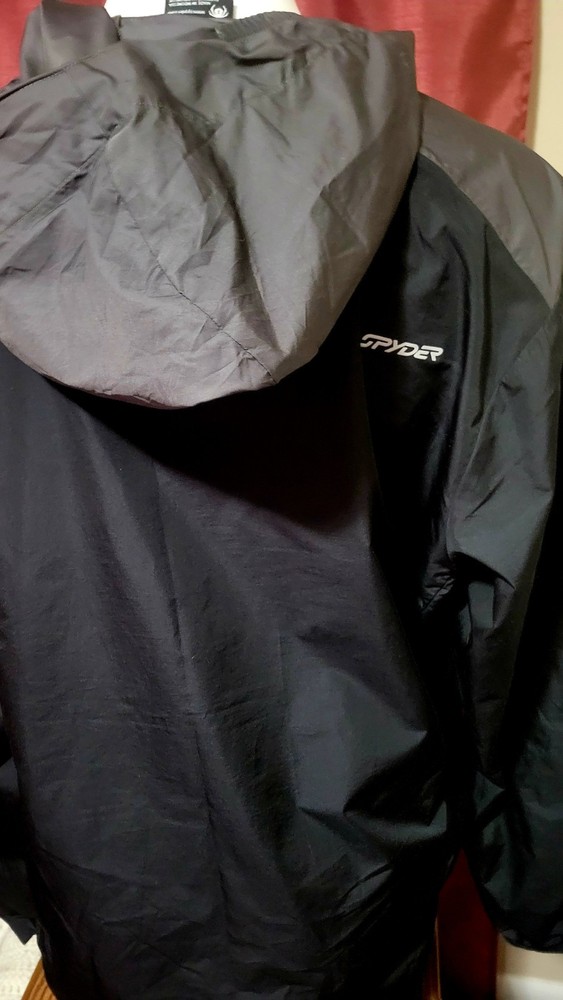 Spyder Size L Men Wind Jacket with Hood Water Resistant Full Zip Two Pockets