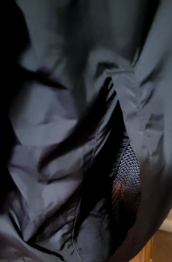 Size Type: Regular Outer Shell Material: Polyester Garment Care: Machine Washable Fit: Regular Handmade: No Lining Material: Polyester Vintage: No Type: Jacket Size: L Color: Black Insulation Material: Polyester Personalize: No Performance/Activity: Walking Style: Windbreaker Chest Size: 41 in Season: Winter, Fall, Spring Pattern: Solid Country of Origin: China Brand: Spyder Features: Water Resistant, Full Zip Occasion: Casual Department: Men Closure: Zip