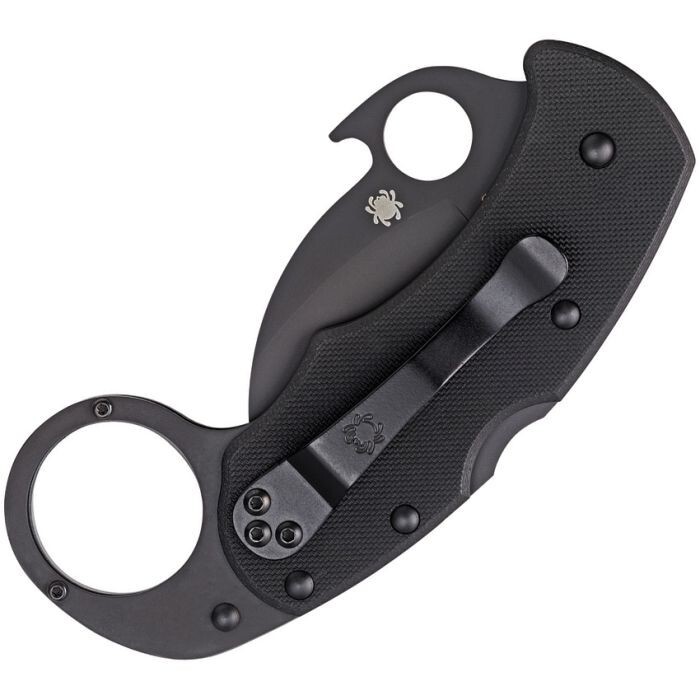 Model: Spyderco Karahawk Opening Mechanism: Manual Brand: Spyderco Dexterity: Ambidextrous Blade Type: Karambit, Pen Type: Pocketknife Color: Black Number of Blades: 1 Blade Material: Stainless Steel Handle Material: Stainless Steel Blade Range: Under 2.75in. Original/Reproduction: Original Blade Edge: Plain Lock Type: Lockback