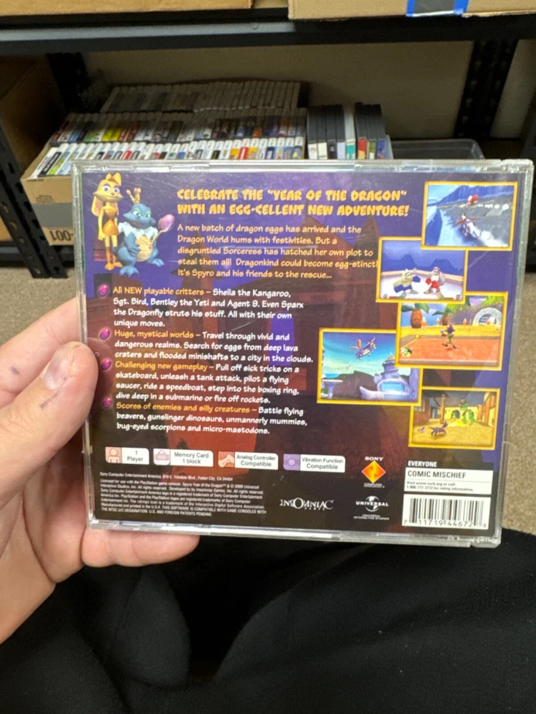 Region Code:NTSC-U/C (US/Canada)Manufacturer Warranty:1 Yeargtin13:0711719446729UPC:0711719446729Features:Manual IncludedRating:E-EveryoneVideo Game Series:SpyroGenre:Action & AdventurePublisher:SCEARelease Year:2000Game Name:Spyro: Year of the DragonPlatform:Sony PlayStation 1MPN:SCUS-94467