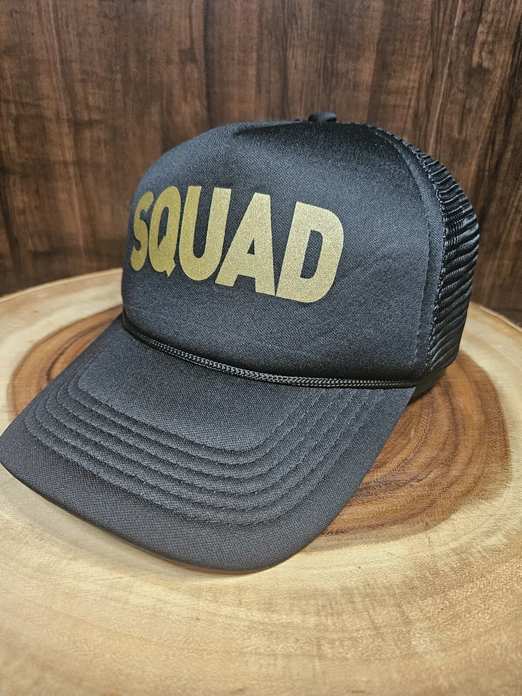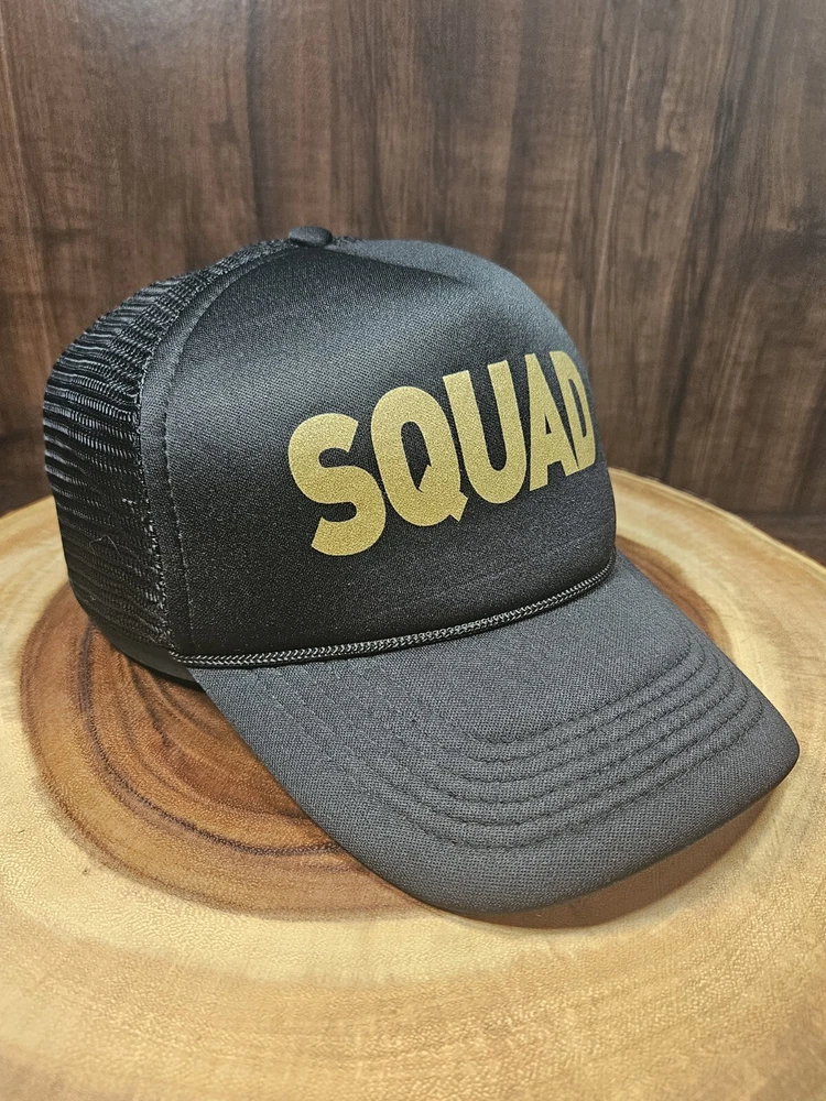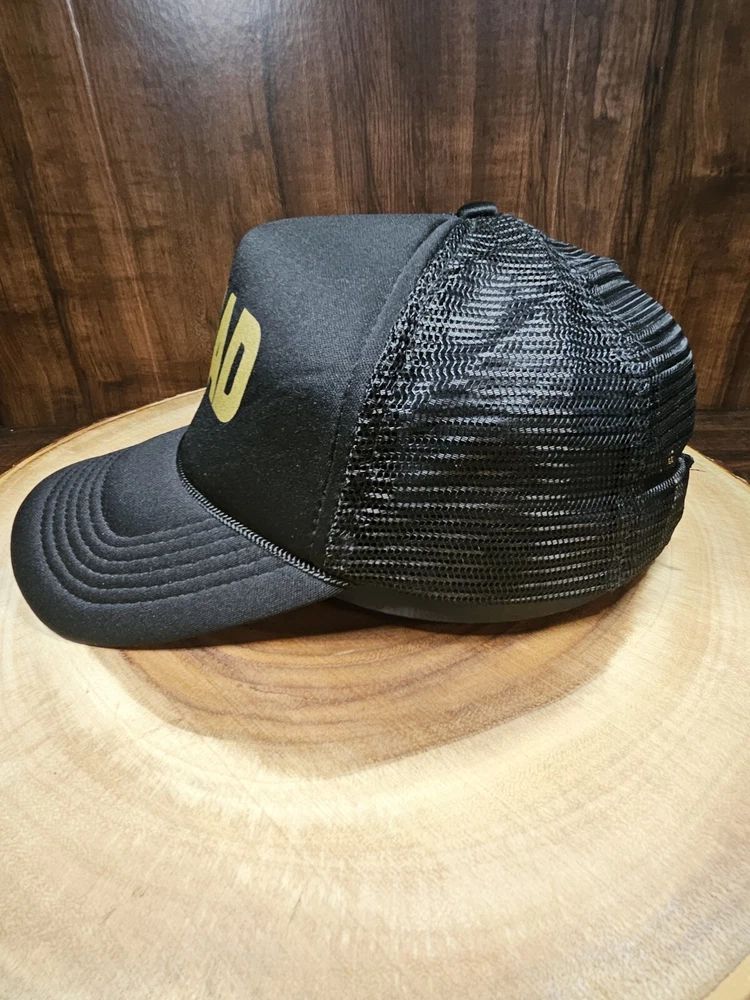 This stylish and versatile Snap-Back trucker hat is a must-have for any fashion-forward man. With a solid black color and gold accents, this hat is perfect for any occasion, whether it's a casual day out or a business meeting. The adjustable size and breathable mesh back make it comfortable to wear all day long. The hat features a snapback closure for a secure fit and a stylish look. Its streetwear and trucker theme makes it a great addition to any outfit. This hat is perfect for men who want to add a touch of style to their wardrobe.