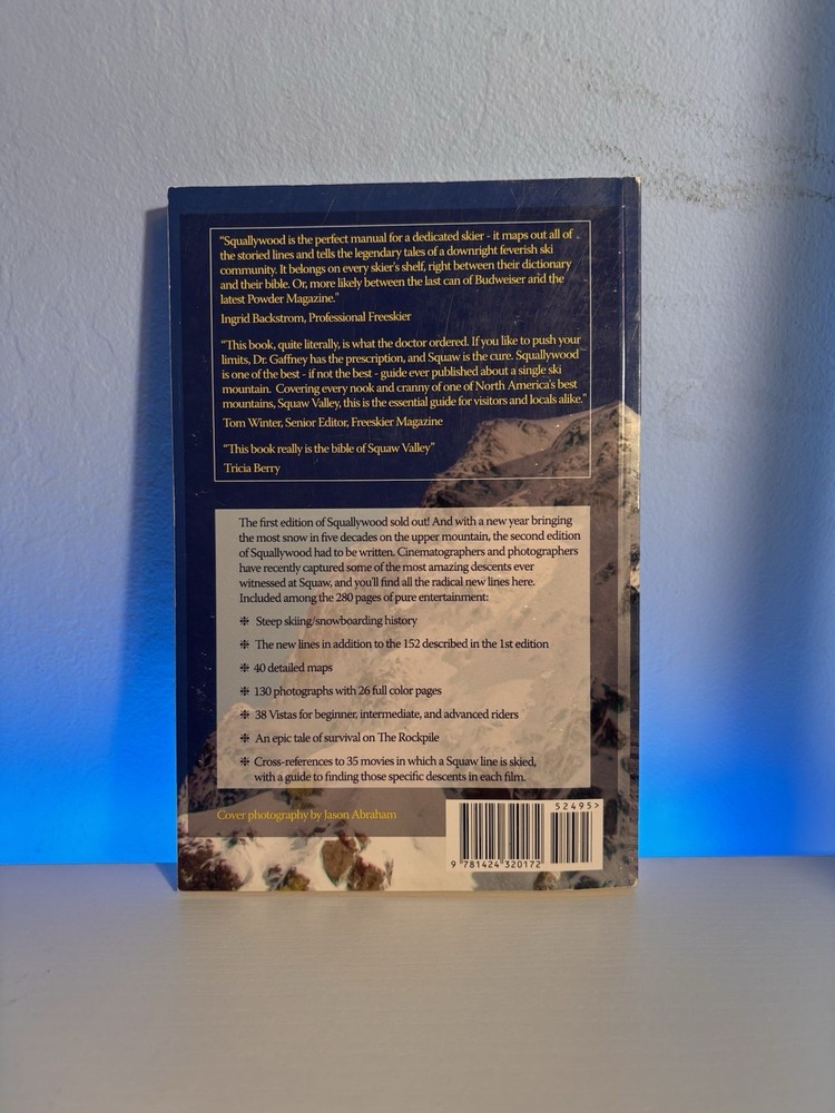 This book is almost perfectly brand new, no creases what so ever and pages are perfectly straight. The "Squallywood 2nd Edition Paperback" by Robb Gaffney, M.D., and other authors is a vintage guide to Squaw Valley's most exposed ski lines, published in 2006. This nonfiction book in English is intended for adult readers and features illustrations, making it a valuable resource for skiing, snowboarding, and mountaineering enthusiasts. With a focus on Squaw Valley and the surrounding area, this guide offers insights into the unique terrain and opportunities for adventure seekers in the early 2000s.