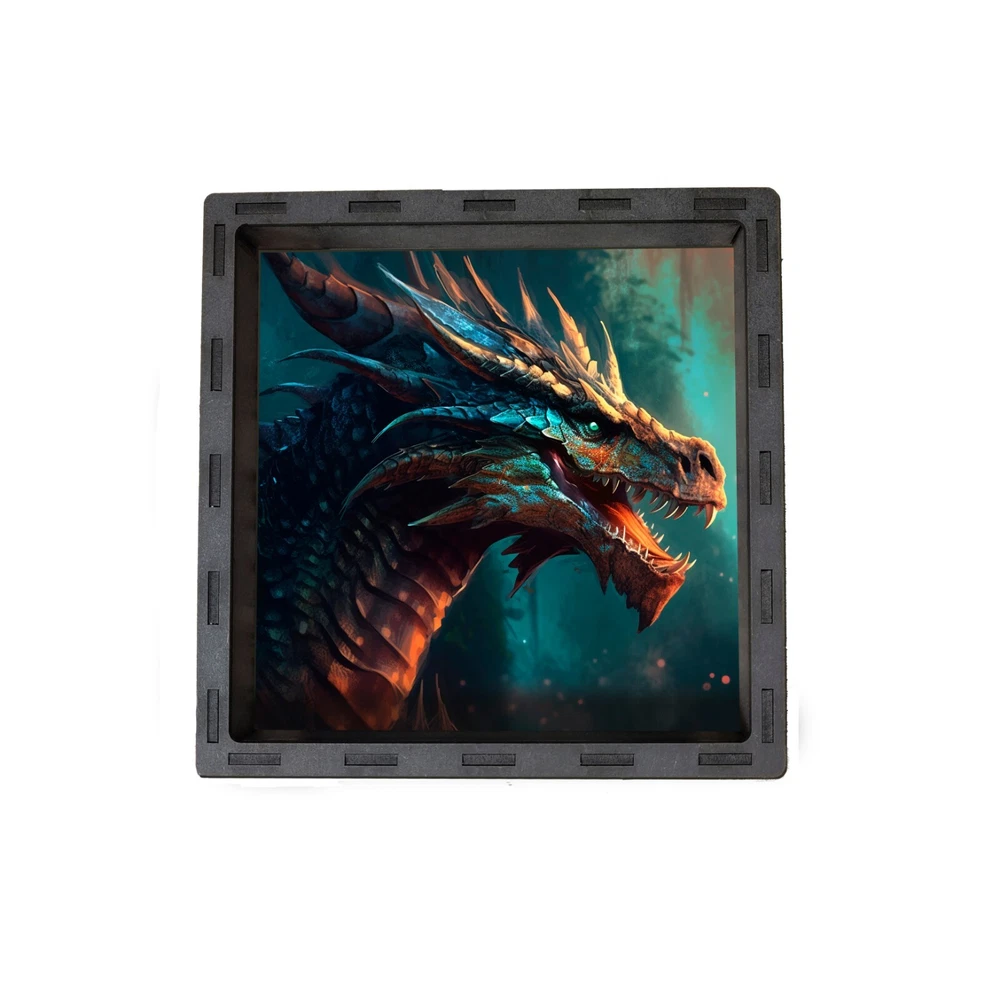 Wooden Dice Tray Inlay on printed neoprene Tray for rolling dice / tabletop games External Size - 17cm x 17cm x 3cm; Internal Size - 15cm x 15cm x 2.5cm Dice NOT included Made and hand finished from laser cut black MDF with printed neoprene inlay for a statement tray with an even rolling surface. Prevents lost dice, crawling around on the floor for that elusive D20, chasing the dog for a die they've picked up, arguing over a strategically placed corner die wedged in the carpet etc. I offer safe and secure worldwide shipping, and can combine shipping at only 50p per additional item (highest base rate applies). If you like what you see please check out my other listings, follow me on Pinterest, or favourite my shop for updates on new items! Please note all my items are made to order in the UK and dispatched within the stated time frame. Not quite what you're looking for? Please check out my other items here- https://www.ebay.co.uk/sch/finch_rock_123/m.html