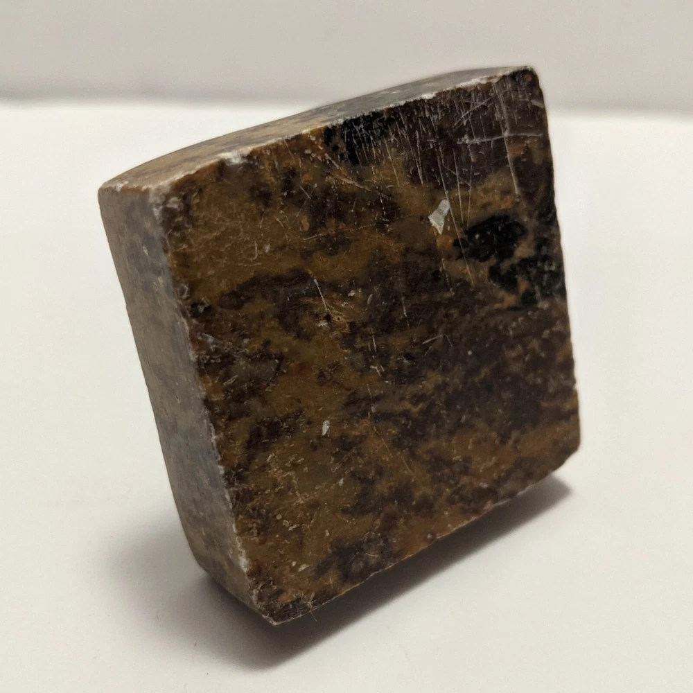 SQUARE MARBLE DRAWER PULL KNOB Ad is for 1 knob. Measures 1-7/16 inches square. Marble is 3/8 inches deep. Entire knob extends 7/8 inches from where it will attach to furniture. Long screw is attached to the marble and includes nut and washer. Marble is a bit nicked up here and there. Good shabby look but could probably be buffed down. I'm not sure because I've never worked with marble. Fun little knob made of marble! Free ship!
