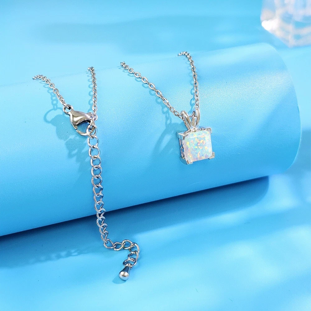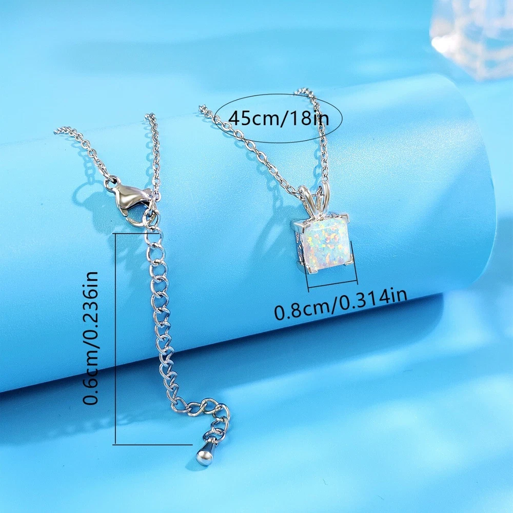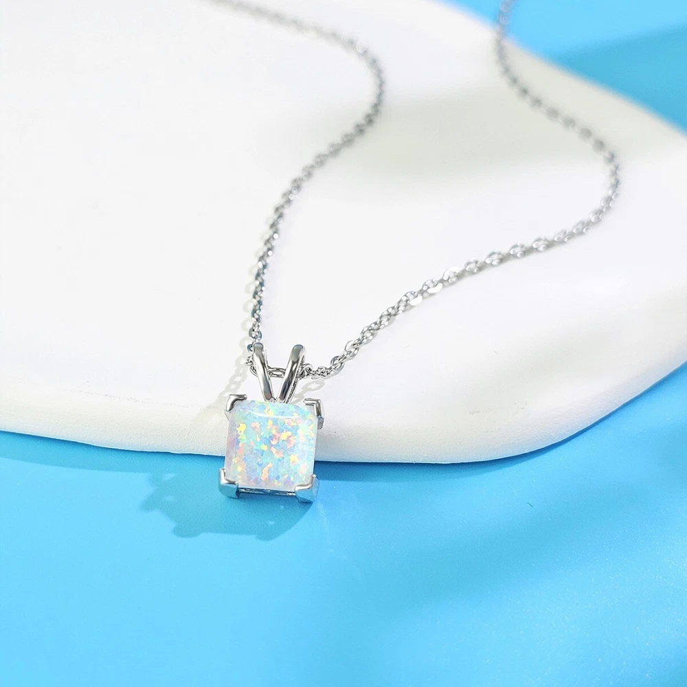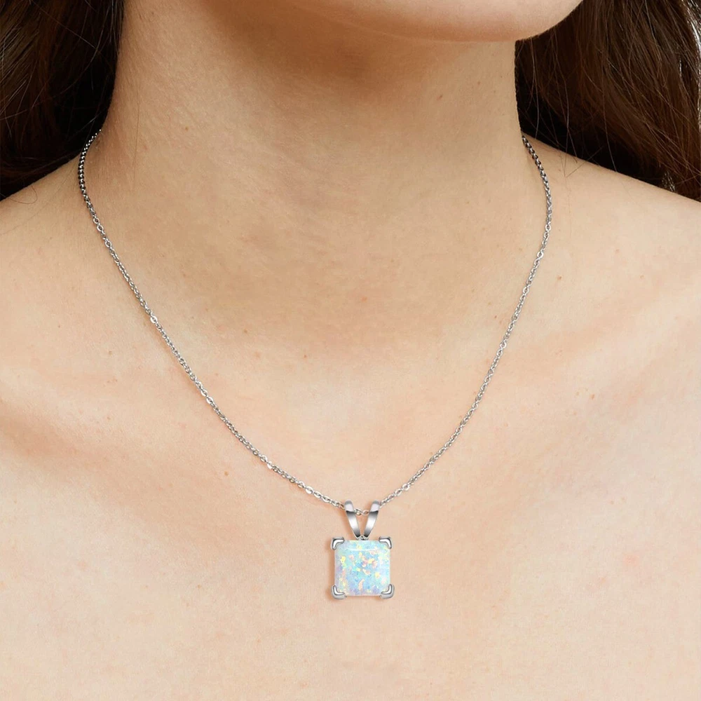 Princess Opal Pendant Necklace Set in Solid Sterling Silver Pendant measures 8mm 18" sterling silver chain included.