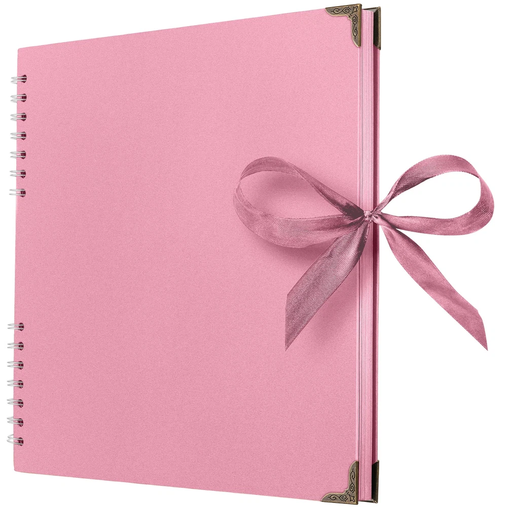 Scrapbook This 11 x 11 Inch scrapbooks is durable and suitable for long term storage for you and your loved ones beautiful memories. It has 40 sheets, 80 pages of high quality thick paper, designed with ribbon closure, hard cover and corner protectors The spiral bound spine allows the scrap book to expand to fit in your photos, postcards, souvenirs. You can tie the ribbon into a bow or other style that you like and make your photo album scrapbook as individual as your memories and keep them endlessly The hardcover protects the pages, you can design the hardcover and inside pages of this photo book with paints, pens, stickers and even add glitter for a touch of sparkle and shine. You can look back over time at your amazing creation, So get creative now Scrapbooking is all about telling a story so think about the experiences in your life that means the most to you, lays flat on the desk, hold your art pen, write and record your happy memories beside the photos, Easy to fit 6 x 4 inch photos It makes an ideal gift for Anniversary, Mothers Day, Birthday, Valentines Day, Christmas, Wedding guest book, Baby memory book and for recording your travels or add your creative touches and embellishments to make it your own. Package Includes: 1 x Scrapbook