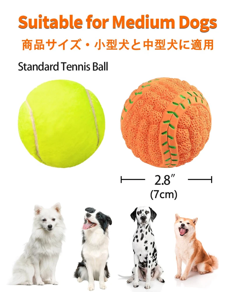 Easy To Squeak: Built-in squeaker makes a funny squeaky sound to attract dogs’ attention and make them excited and happy, great for boredom and stimulating. Bouncy Fetch Balls: The elastic latex balls bounce well when thrown to the ground, which inspires pets hunting instinct to jump and chase the ball, great for indoor & outdoor training, tossing and fetching games. The light-weight balls can float on water, also suitable for water games in the pool, lake or beach. Safe Natural Latex: The toys are made of non-natural latex rubber, which is safe and not harmful to pets’ . The flexible balls are durable for pups to chew and play. Latex toys are also easy to keep clean, simply rinse with water after use. Teeth Cleaning Ball: Small bumps and textures are added on the surface of the balls, which not only encourages doggies to chew but also helps clean teeth and promote dental . Elastic latex is gentle on puppy’s teeth and does not hurt gums while teething. Balls for Medium Dogs: Includes 4 different sports balls (basketball, football, volleyball and baseball) which are 2.8” in diameter (about the size of a standard tennis ball), perfect for medium breed such as Dachshund, Standard Poodle, , Boxer, Pit Bull and Border Collie.
