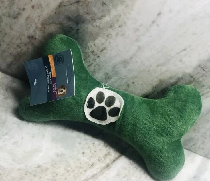 The product is a 12-inch long dog toy in the shape of a bone, made with velvet green cotton material. It features a squeaky mechanism, making it an interactive and engaging toy for medium-sized dogs. The toy is branded as "Texas Trails Barkery" and is designed as a unisex product suitable for both male and female dogs. With its squeaky feature and quality material, this toy provides entertainment and stimulation for dogs during playtime.